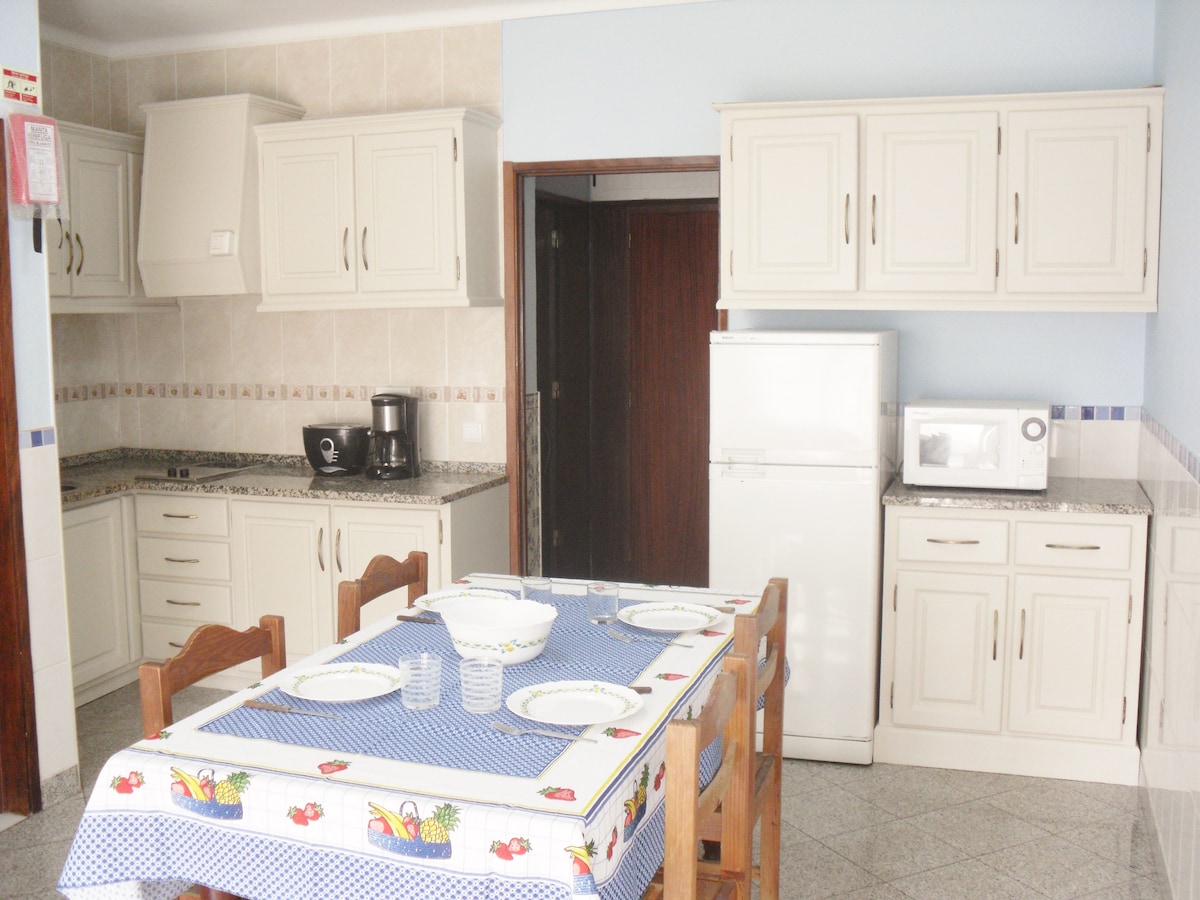 Apartamento muito bonito, localizado em condomínio 5 estrelas, 2 piscinas, campo de ténis e garagem a 650 metros da praia dos Olhos de Água. 1º andar com escadas, está bem equipado com tudo o que faz falta numa casa. Quarto com cama casal grande 160x200, sala com 2 camas de solteiro no sofá, uma em cima e outra na gaveta em baixo. Varanda voltada a poente com mesa e cadeiras.