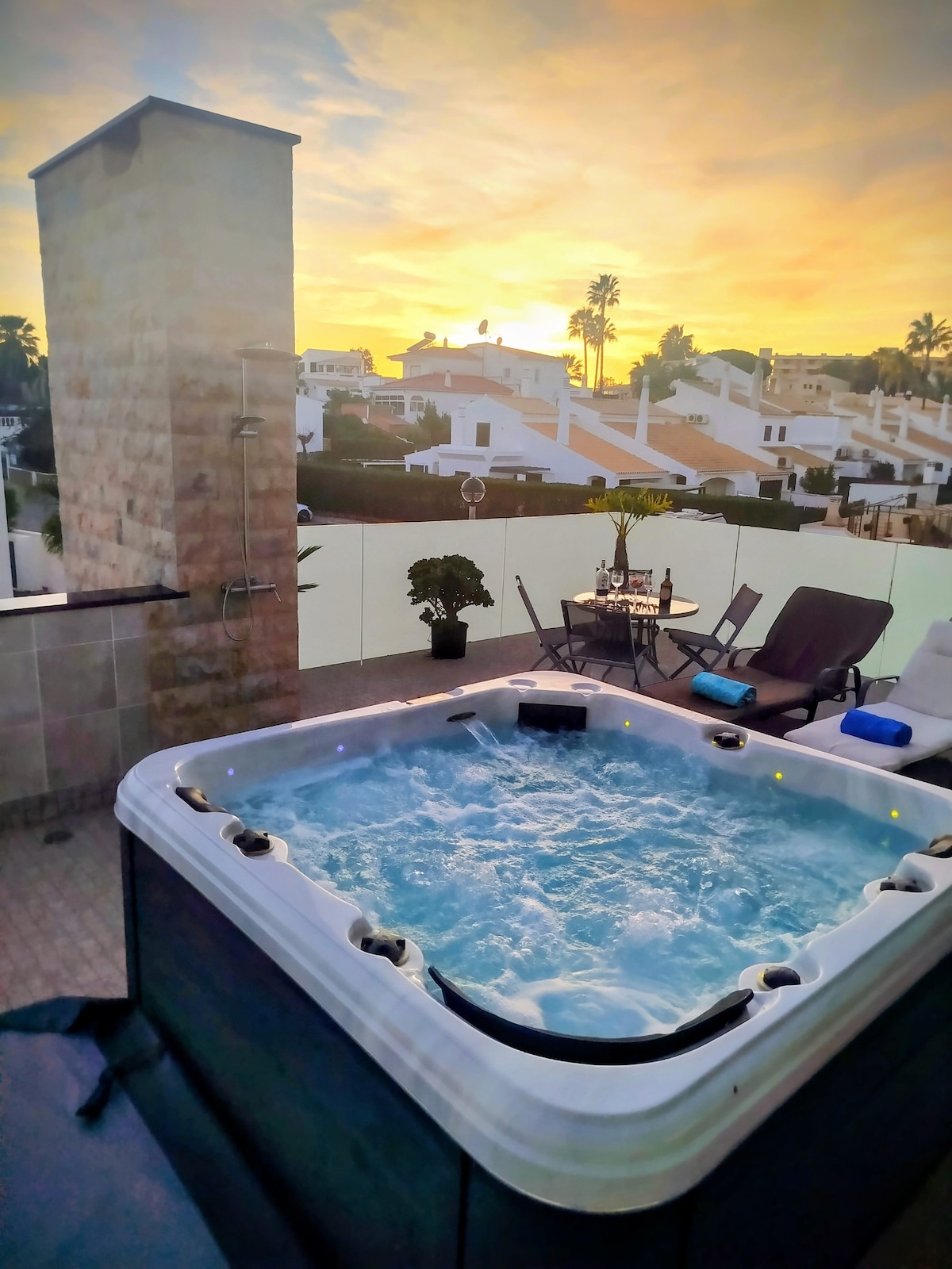 Albufeira Prime 32 is a modern, 3 bedroom, air-conditioned penthouse apartment with a sizable private roof terrace that opens up to the pool area. The private roof terrace offers you seating and sunbathing areas, there is also a Jacuzzi/Hot Tub and BBQ. The apartment has a Large TV, a fully equipped kitchen that includes a dishwasher, microwave, washing machine, fridge, and oven. Located in the center of Albufeira, just 8 minutes walk from the closest beach.