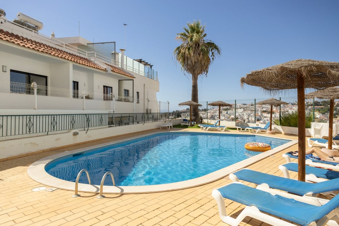 Amazing 180° Seafront view with private heatable swimming pool 2 bedrooms, 1 living room, 1 dining room, 1 fully equipped kitchen, 2 bathrooms, 2 terraces. Recently refurbished and fully equipped. Modern and stylish. Fantastic views over the ocean and Albufeira's beach/city. Private swimming pool with ocean view. Central location. Easy parking. All commodities within 100 meters. 4 minutes walk from the beach. The apartment is on the 3rd (and last) floor of a 3 storey typical Algarvian villa.
