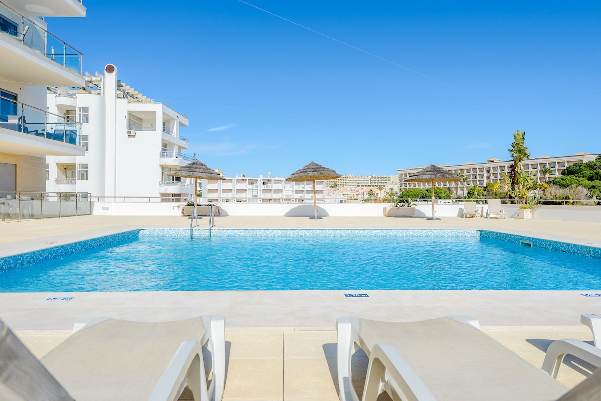 Beautiful 2BR, 2BA apartment with private pool just 200m from stunning Meia Praia beach. Walk to beachside restaurants or explore the scenic wooden boardwalk. Only 5 mins by car to the Marina, Palmares golf, and historic Lagos. Ideal for families, couples, friends, or golf lovers. Please note: construction of a new luxury hotel is underway on the adjacent plot.