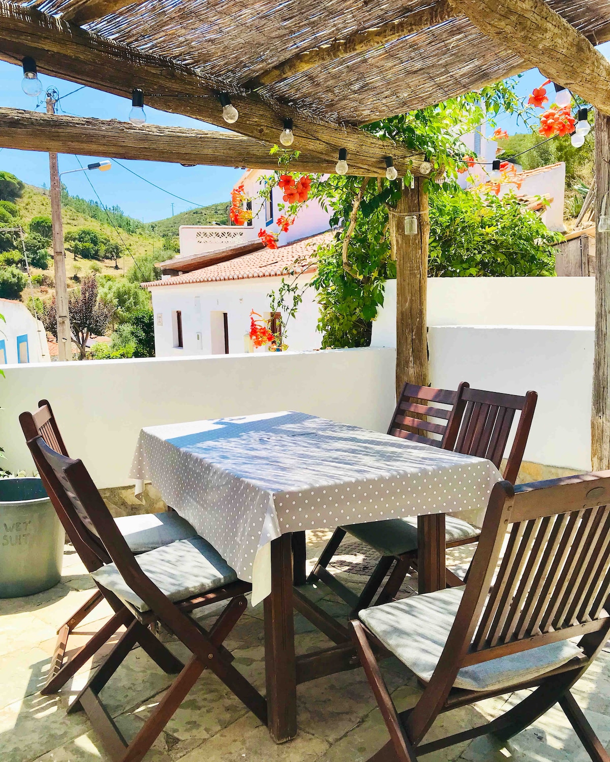"Casa Bordeira" is located in the authentic Algarvean village Bordeira with amazing views over the surrounding countryside. The unspoilt beaches of the Western Algarve are only 5 mins drive away and invite for a stroll the whole year around. The nearby town of Aljezur is 15 min drive away and offers all important amenities and sights.