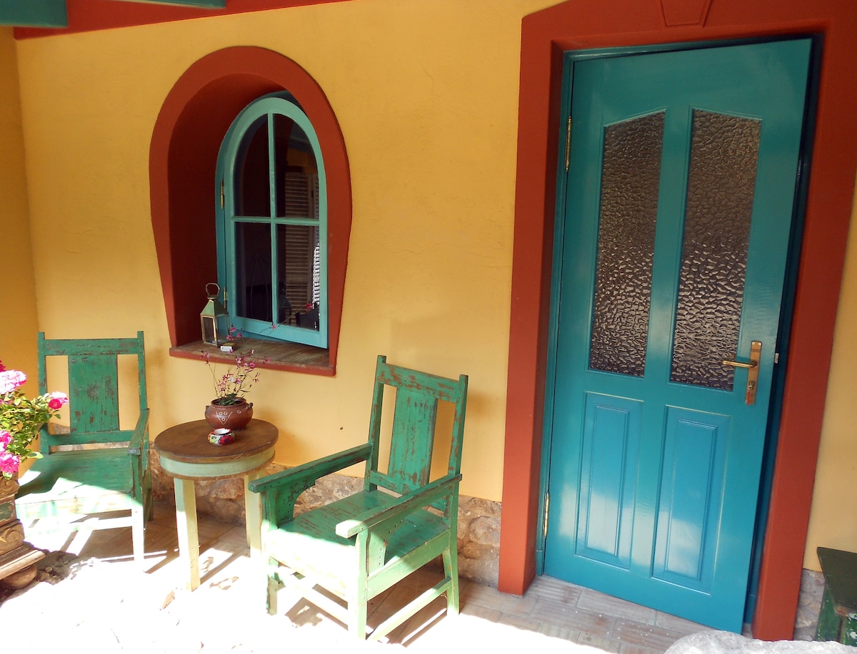 The Chapel Room is a characteristic room on a unique rural estate in the Algarvian countryside. The estate breaths authenticity and offers a pool and a beautiful sauna. The room features a double bed, a kitchenette with fridge and cookerplate and a spacious bathroom in Moorish style with bath and shower. The entrance door gives onto a gallery that leads to the inner garden.