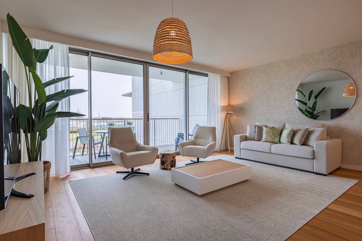 Our T1 reflects comfort and elegance. It welcomes visitors in a small hall that leads to a kitchen, full of state-of-the-art appliances and a Nespresso coffee machine at your disposal. To the left is the bedroom with a double bed, television and lots of natural light. The bathroom features a generous shower. The living room is equipped with a 65" internet television and a sofa bed, providing direct access to a terrace prepared for meals and unique moments of relaxation. Apart with AC