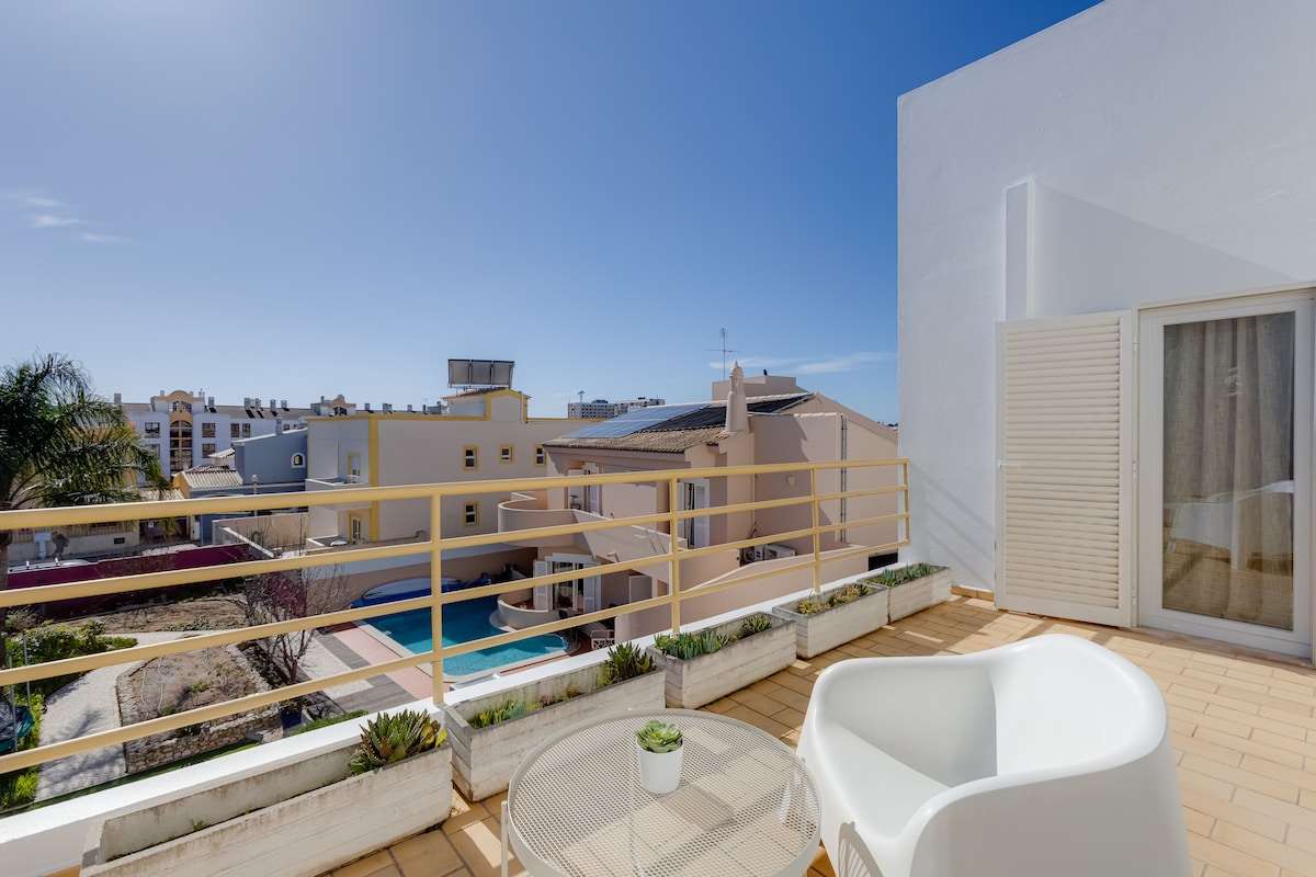 Luxuoso apartamento NOVO no mercado, seguramento um dos apartamento mais do Bonitos do Airbnb. Apartamento com maravilhosa vista panorâmica mar e terra com uma decoração moderna e super confortável localizado no centro Histórico de Albufeira. Numa zona perto de tudo e bastante calma a 5 minutos a pé da praia e do jardim de albufeira. 3 quartos dois em suite e uma terceira casa de banho. Cuidado piscina a cerca de 300 metros do apartamento e fechada no inverno.