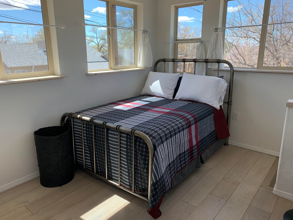 This modern southwest casita sits snuggly on our 1923 historic adobe property blending olde materials and modern amenities. Artist constructed; it brings a modern twist to your Albuquerque adventure. Casita is Spanish for little home, and this casita is entirely a home. Featuring full kitchen, King bed, a waterfall shower, private patio and pocket entryway doors that merge NM's beautiful outdoors with our cozy indoors. Permit:052140
