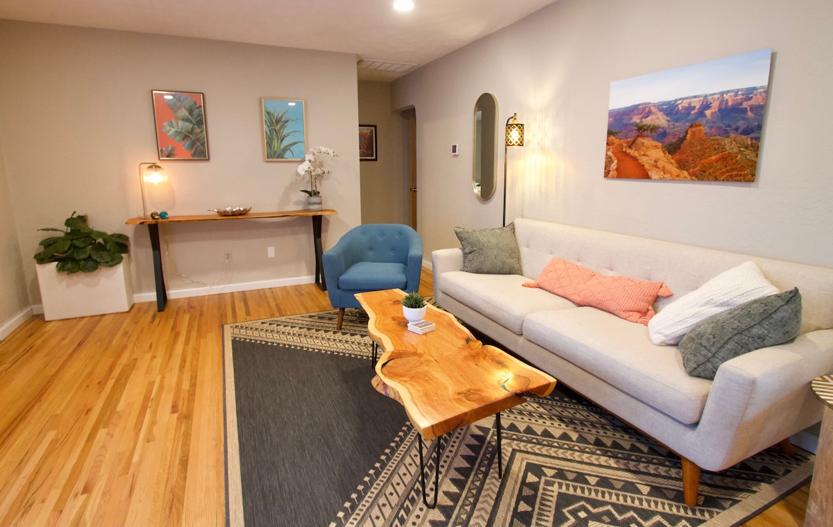 Everyone seems to love this newly remodeled, stylish, and private 1-bedroom casita that offers a comfortable, relaxing environment, quiet neighborhood, parking, and extremely convenient location. Short to longer term stays, the Cozy Casita is 10 minutes to KAFB, downtown, & UNM campus/hospital. A short walk through the Nob Hill neighborhood leads to Historic Route 66 with its hip-eclectic-retro Shops, Restaurants, Cafes & Microbreweries. Or simply enjoy relaxing or reading in our back yard.