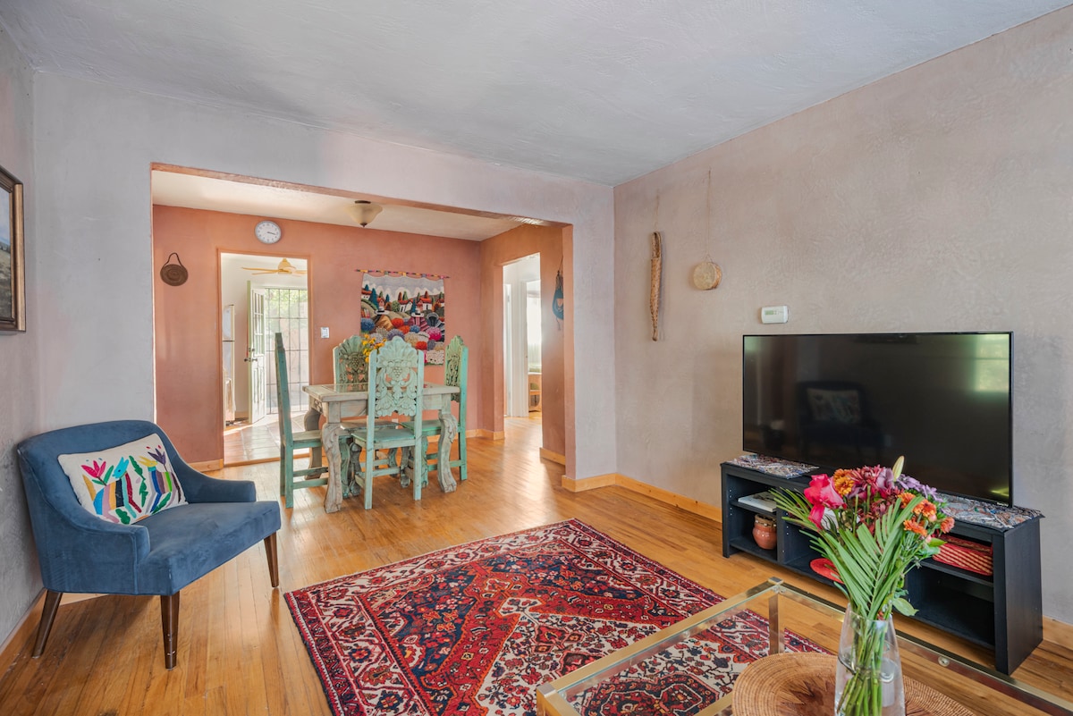 The whole family will be comfortable in this spacious updated home. Come see all Corrales has to offer! Walking distance from galleries, restaurants, wineries/breweries and located between Albuquerque and Santa Fe, Corrales' pastoral charm provides the perfect getaway from the day's activities. Over 1600 sq ft with private enclosed yard, the historic Bridge House has a New Mexican appeal all its own with adobe walls, beamed ceilings and modern updates to provide the best of both worlds.