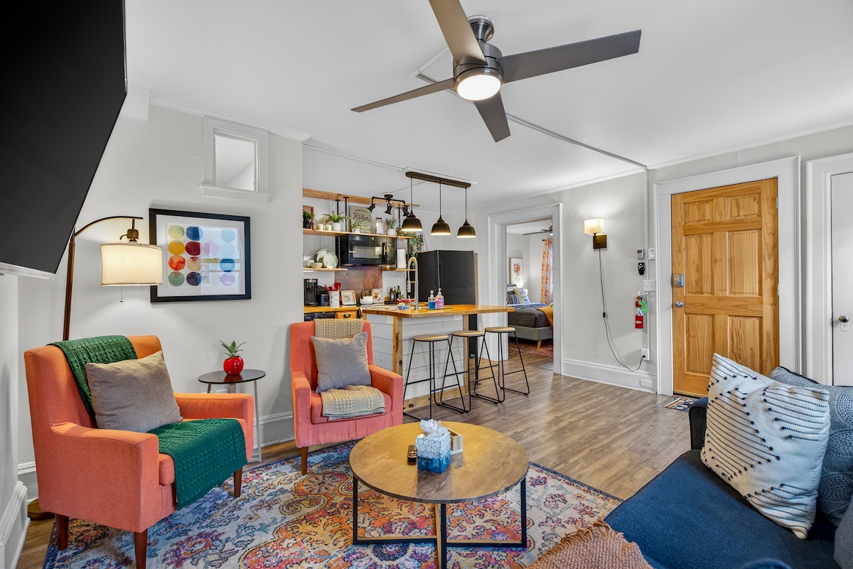 1 bedroom with 10ft ceilings with lots of natural light. Walking distance to amazing restaurants, craft breweries, walking and biking trails, museums, theater, parks, boating, and skiing. Close to SUNY and CCC campuses and UVM/CVPH hospital. Airport is 5 minutes away. Lake Champlain and boat basin are only a 5 minute walk. Lake Placid, Burlington and Montreal are an hour or less away. Plenty of parking for vehicles and anglers with their boats. Lots of local history to explore.