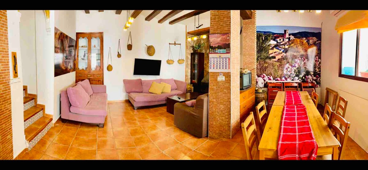 "Una casa con Alma" Alojamiento turístico en Siete Aguas (Valencia), 322 m2 de vivienda, parcela de 4555 m2, capacidad 14 huéspedes, 6 habitaciones, 2 cuartos de baño, piscina, barbacoa y aparcamiento para 5 vehículos. La villa cuenta con todo lo necesario; cocina completamente equipada, secador de pelo, gel, champú, botiquín, toallas, leña, lavadora, secadora... Wifi de alta velocidad A 50 km de la playa, a 2 km de Siete Aguas y 20 de Requena. Casa completamente equipada.