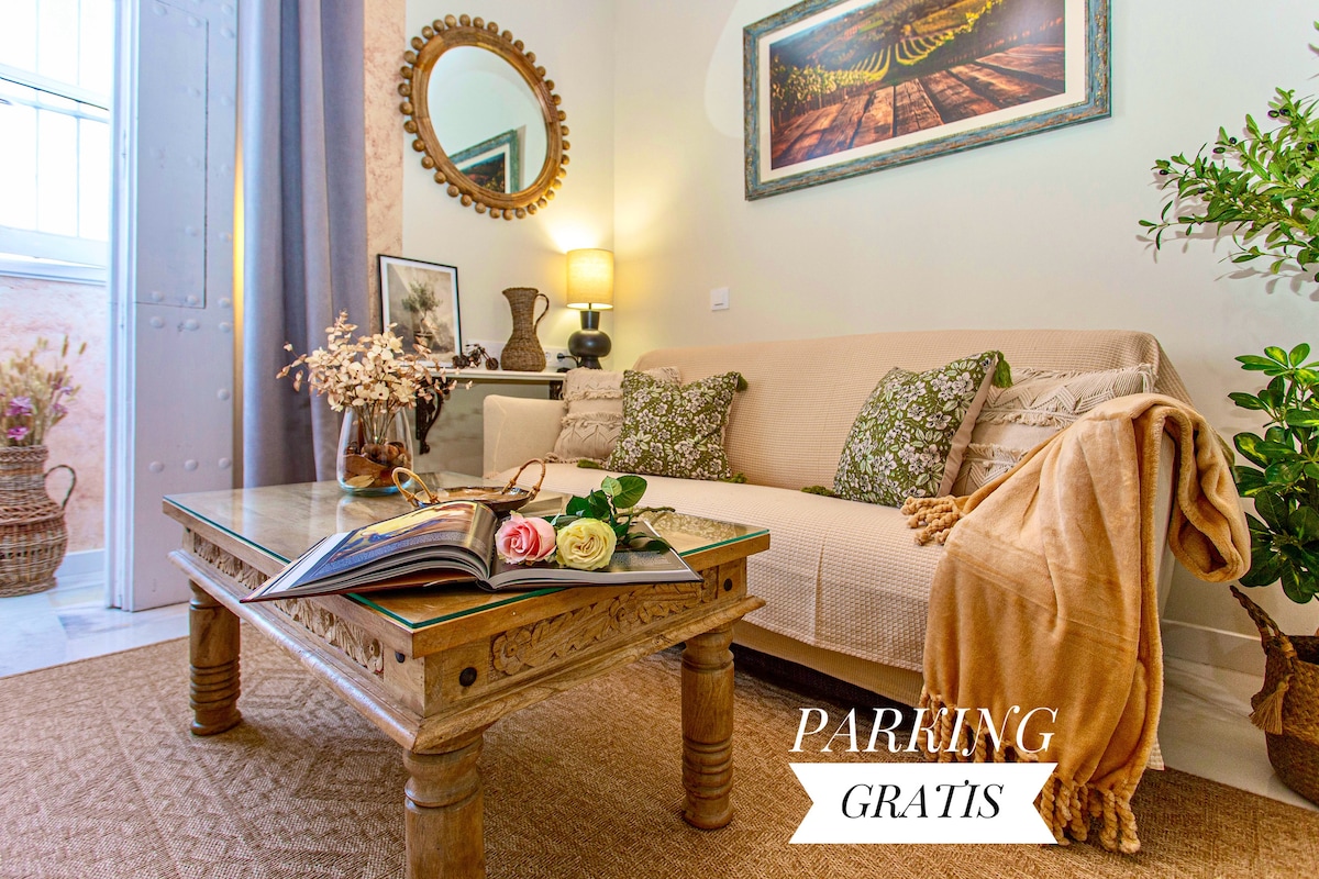 Apartamento con decoración moderna y funcional totalmente reformado . El edificio es un palacio del siglo XIX situado junto a la Plaza del Arenal, en pleno centro de la ciudad. Podrán visitar a pie la zona monumental y comercial de Jerez así como disfrutar de sus bares, tabancos y restaurantes sin necesidad de utilizar vehículo. Se encuentra situado en uno de los patios del edificio, esto hace que sea un lugar tranquilo y silencioso.