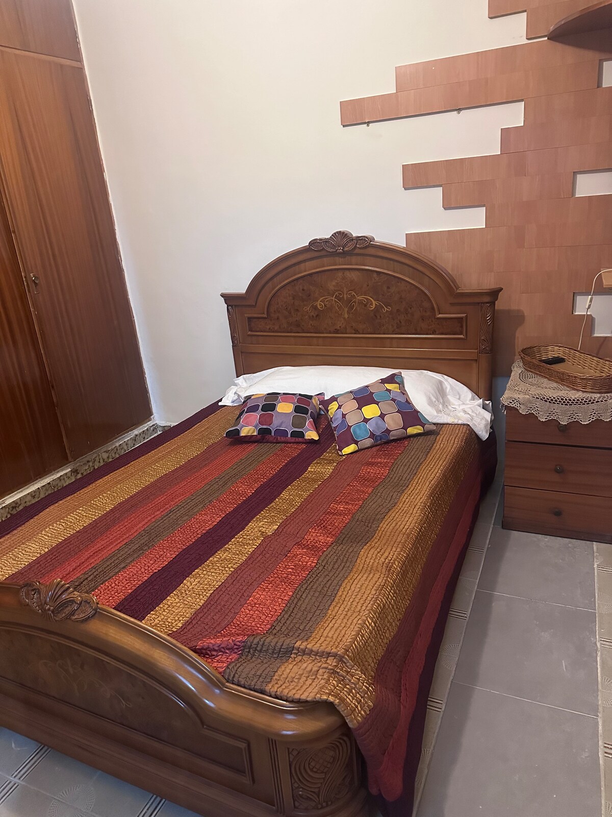 Casa unifamiliar con tres plantas donde vivimos mi hija mayor y yo. La planta inferior que se ofrece adquiere independencia y privacidad al no ser compartida, sólo común la entrada a la vivienda. Habitación, baño, cocina campera con menaje, microondas, tostadora, sandwichera y cafetera. Patio amplio. Barrio residencial, tranquilo, espacioso, con fácil aparcamiento gratuito y bien comunicado. Parada de bus frente a la vivienda. Hospital y supermercado muy cercanos andando.