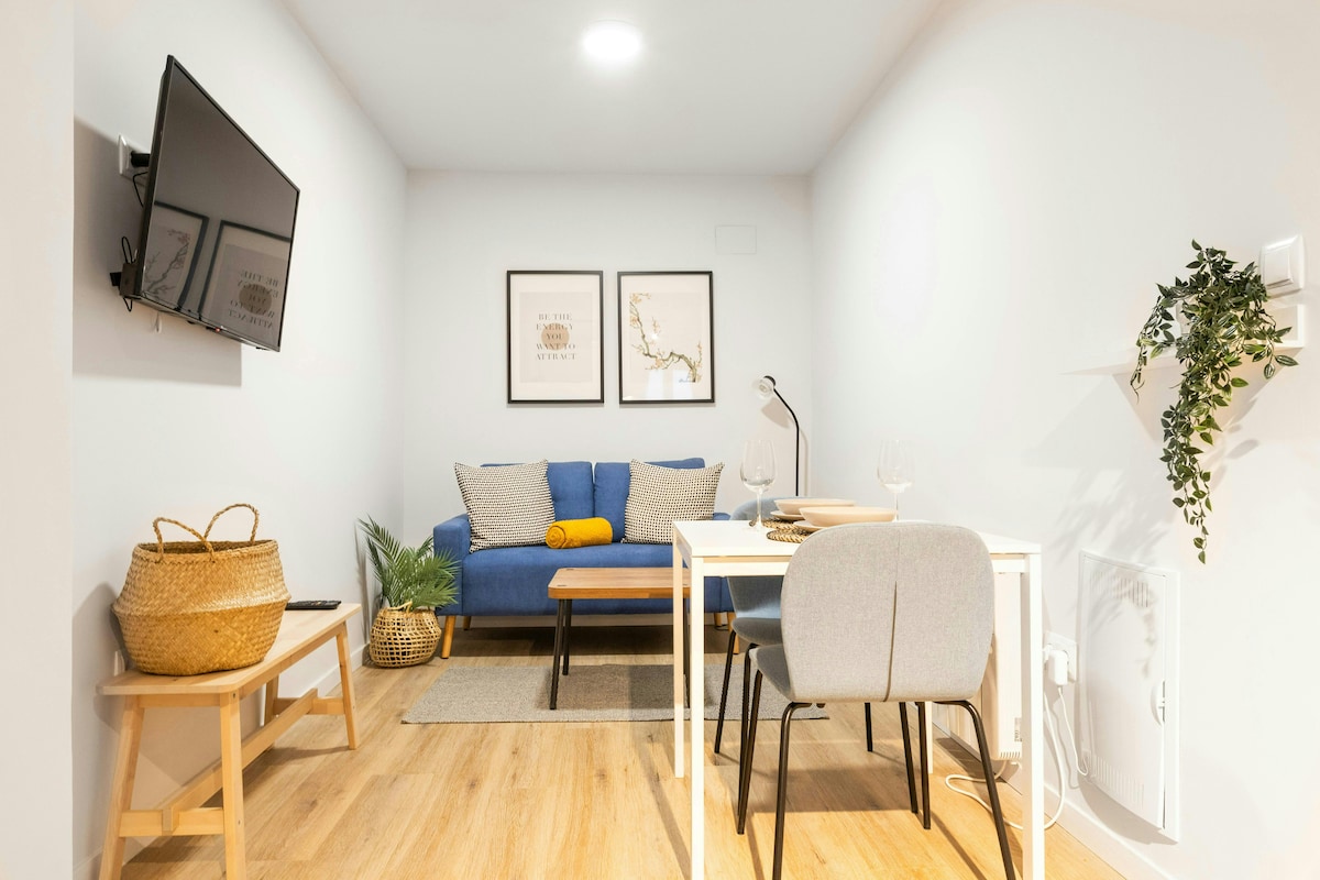 This beautifully designed apartment combines comfort and style, making it ideal for up to 4 guests. The apartment features bedroom, bathroom, a cozy living room with a sofa bed and TV, as well as a fully equipped kitchen and dining table - perfect for a relaxing and comfortable stay. Conveniently located just a short drive from Madrid Airport and only a 5-minute walk from the Planilonio Shopping Mall. It also offers excellent proximity to IFEMA Convention Center and the Metropolitano Stadium.