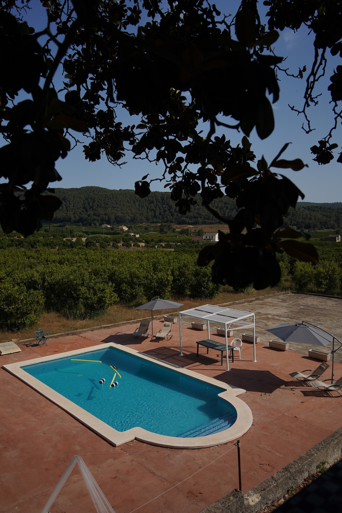 Espectaculares vistas y tranquilidad. Preciosa casa de campo tradicional, renovada con todas las comodidades y con vistas al Parque Natural del Valle de la Murta. La finca de 2 hectáreas de naranjos trepa a través de terrazas hasta el pinar de la montaña, y cuenta con una enorme piscina privada encalada. La casa es un remanso de paz con las mejores temperaturas durante todo el año, con preciosos atardeceres y a solo 5 minutos en coche de los servicios del pueblo, 20 de la playa y 40 de Valencia.