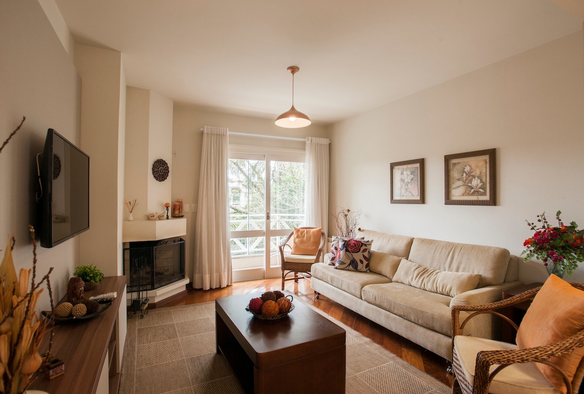 Magnifico apt em condomínio exclusivo à cinco 5 min de caminhada da famosa rua coberta. Venha momentos inesquecíveis em um apt charmoso com total infraestrutura, junto à natureza, com lareira, ar condicionado quente e frio, exatamente o conforto que você merece para desfrutar o melhor da Serra gaúcha. Seu pet de pequeno porte também é bem vindo!