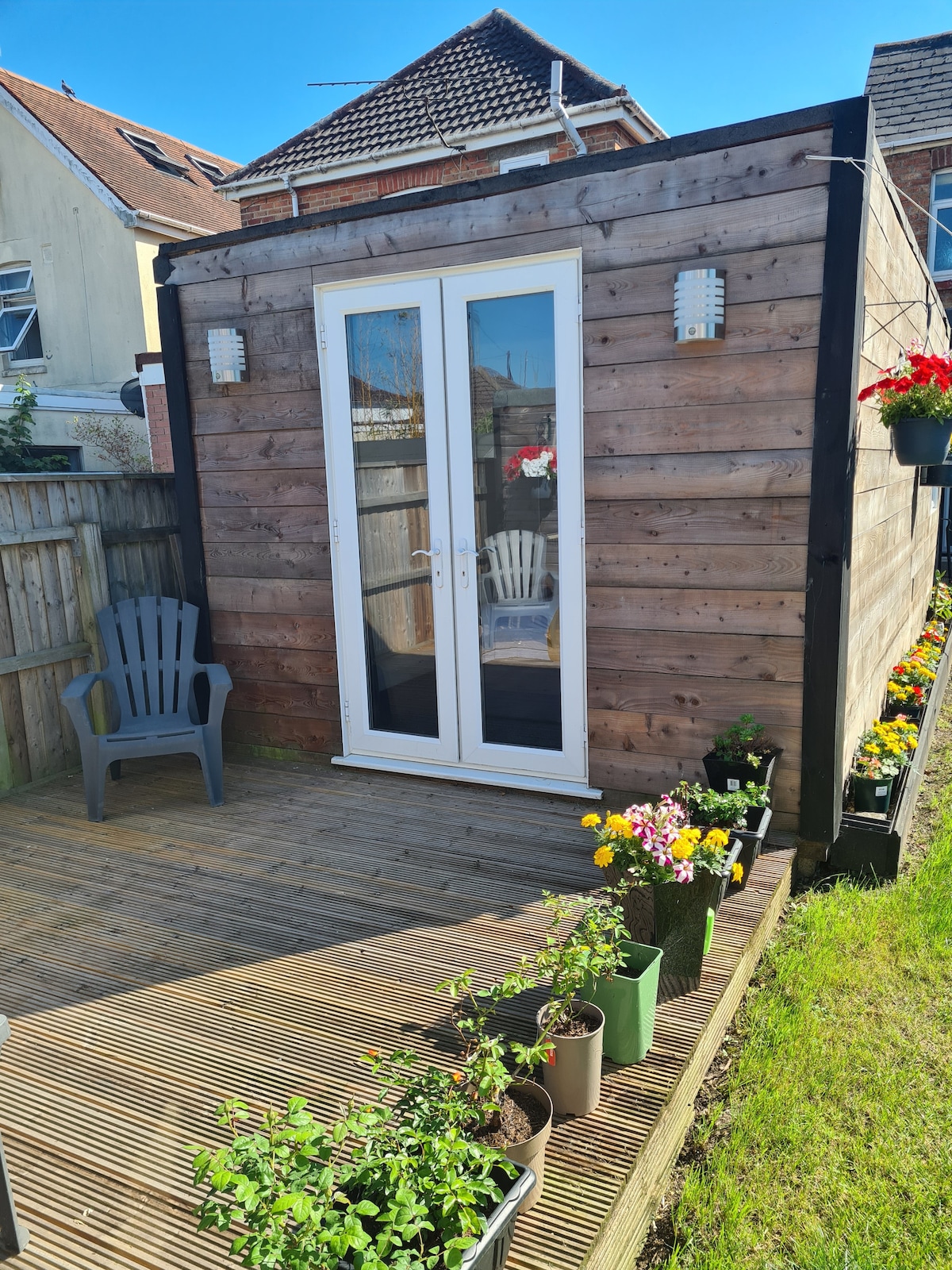 Welcome to an amazing hidden gem. A beautiful one bedroom Cabin. Situated equally between Bournemouth and Poole. 5 minute drive to Beautiful beaches. Fish and Chip shop 2 minute walk. Indian takeaway same distance. Pub 3 minute walk. Need refreshments? Tesco 5 minute walk. You will find everything you need for a quiet enjoyable stay. You have a private entrance to your own living space. Enjoy your own sunny patio area. Accessed from the bedroom to enjoy coffee and breakfast in the sunshine.