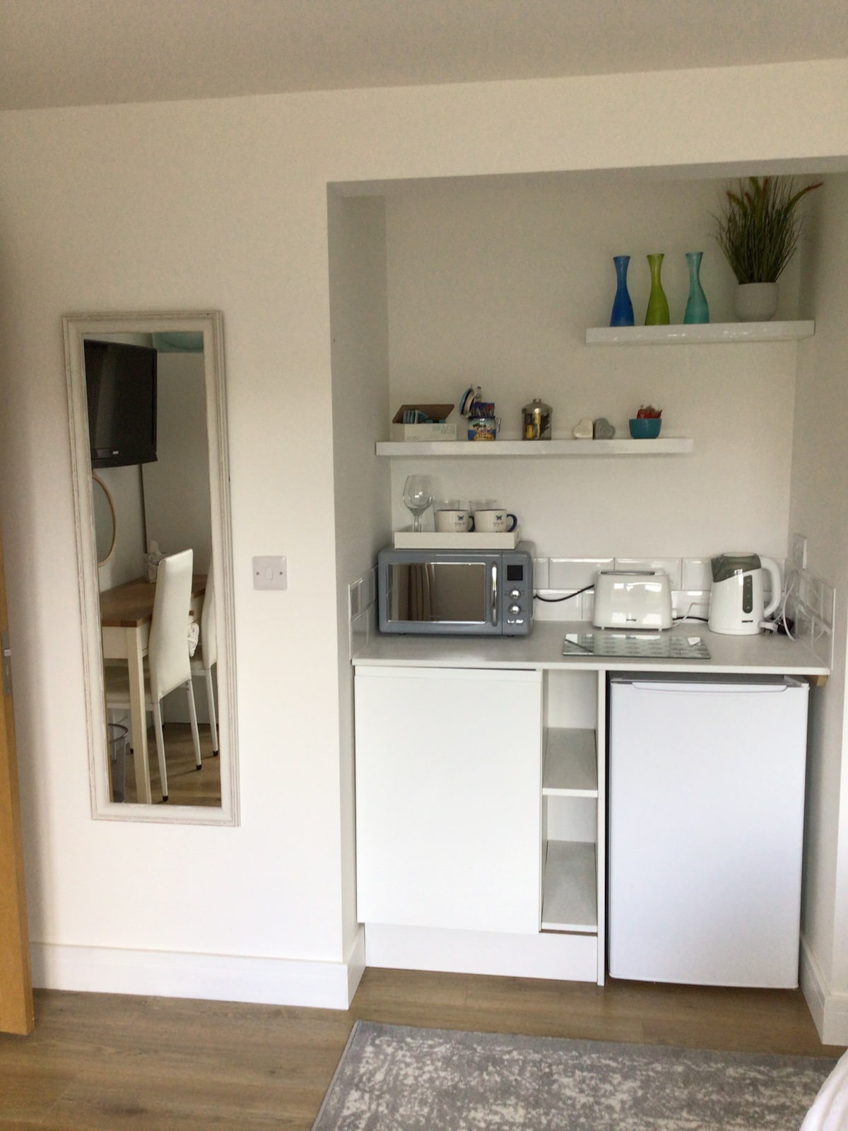 Quite getaway, with everything needed for a short stay. Stylish modern, stand alone studio, with private entrance. Modern shower room & kitchenette, with dining space and King size bed. There is a shared garden area with your own dining and lounging area. We do have a lovely little dog who is very friendly and also the occasional visiting friendly family dogs, who may be around in the garden to say hello.