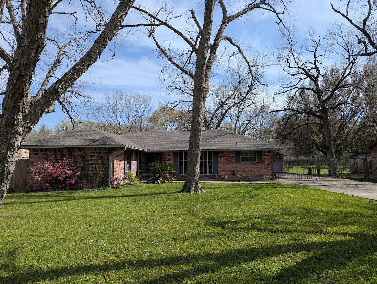 Welcome to the Enamel Escape — our 4-bedroom, 2-bath home, ideal for families, business travelers, and groups. Enjoy high-speed WiFi, a fully stocked kitchen, and an in-home washer and dryer for your convenience. Unwind on the spacious patio, or let the kids enjoy the large backyard. Prime location just 2 minutes from I-45, offering quick access to IAH, The Galleria, Midtown, Downtown, The Heights, and The Woodlands. Experience comfort and convenience—book your stay today!