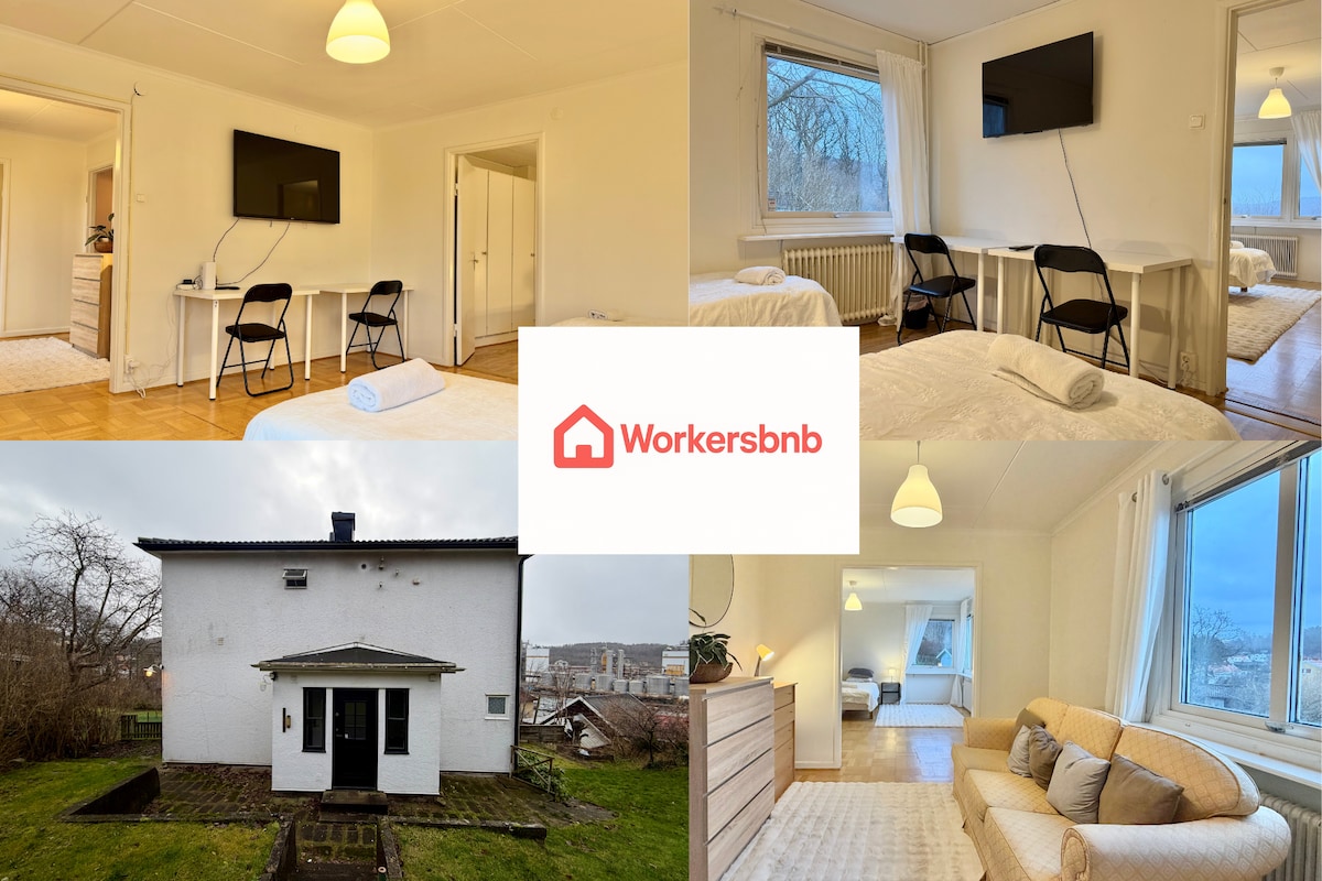 Välkommen till vår härliga och privata lägenhet i ett 2-familjehus. Boendet är 140 m2, beläget på övervåningen och består av: 4 separata sovrum, rymligt vardagsrum, ett fullt utrustat kök, badrum med golvvärme/dusch/WC och en separat extra toalett. 🟡 Göteborg centralstation: 12 min! 🟡 Busshållplats: 2 min 🟡 Tågstation: 8 min 🟡 Matbutik: 8 min 🟠 Rymligt & fräsch boende! 🟠 Stor parkering, för flera fordon! 🟠 Enkel anslutning till väg E45/E6! 🟠 Nära sjö/hav/natur/vandring mm.