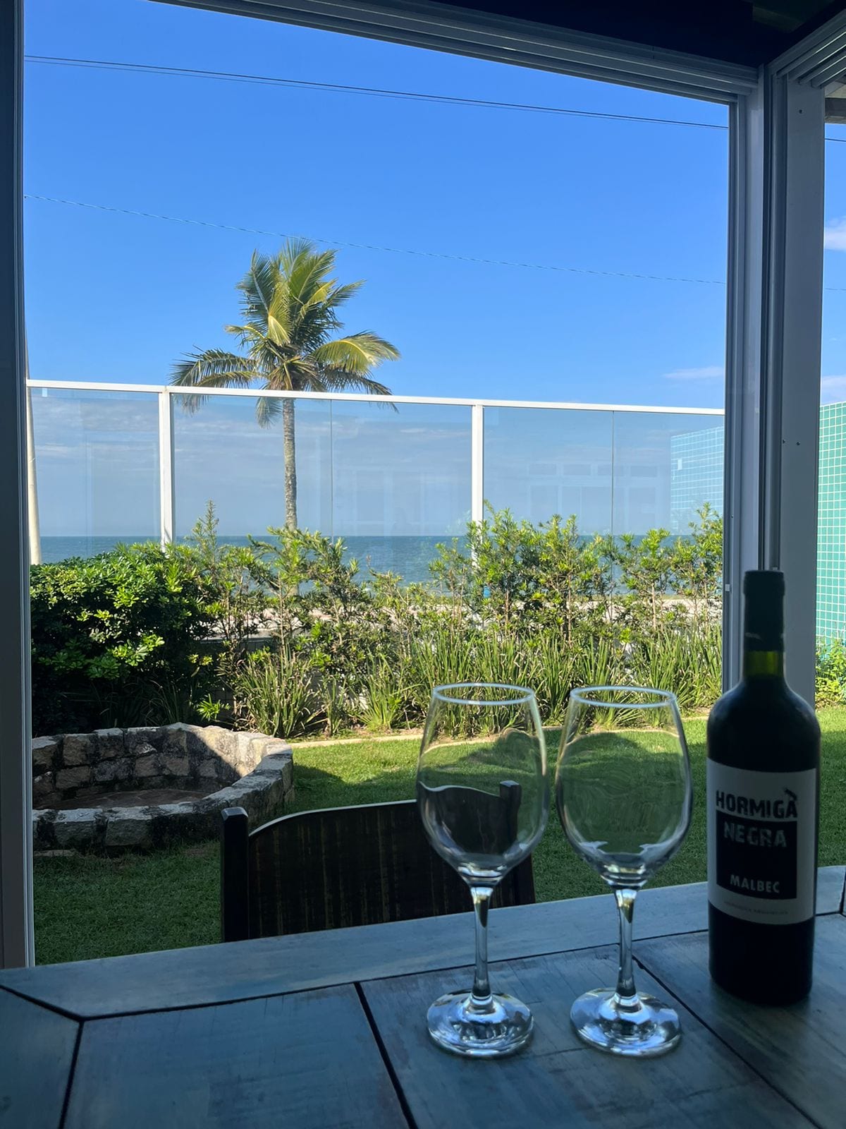 Relaxe neste espaço de bom gosto, conforto e tranquilidade. * Sala c/vista Mar e por do sol * Cozinha equipada p/a preparação de um jantar de chef, como p/um lanche rápido. Louças, taças, panelas, airfreyer * Banheiros c/ducha a gás * Suíte: Acorde olhando o mar, cama Queen, colchão king koll, muito confortável * Quarto/Escrit. Bancada p/trabalho c/ vista mar e Cama casal box * Smart TV c/assinatura de canais * Internet * Ar Condicionado em todos os cômodos Um luxo
