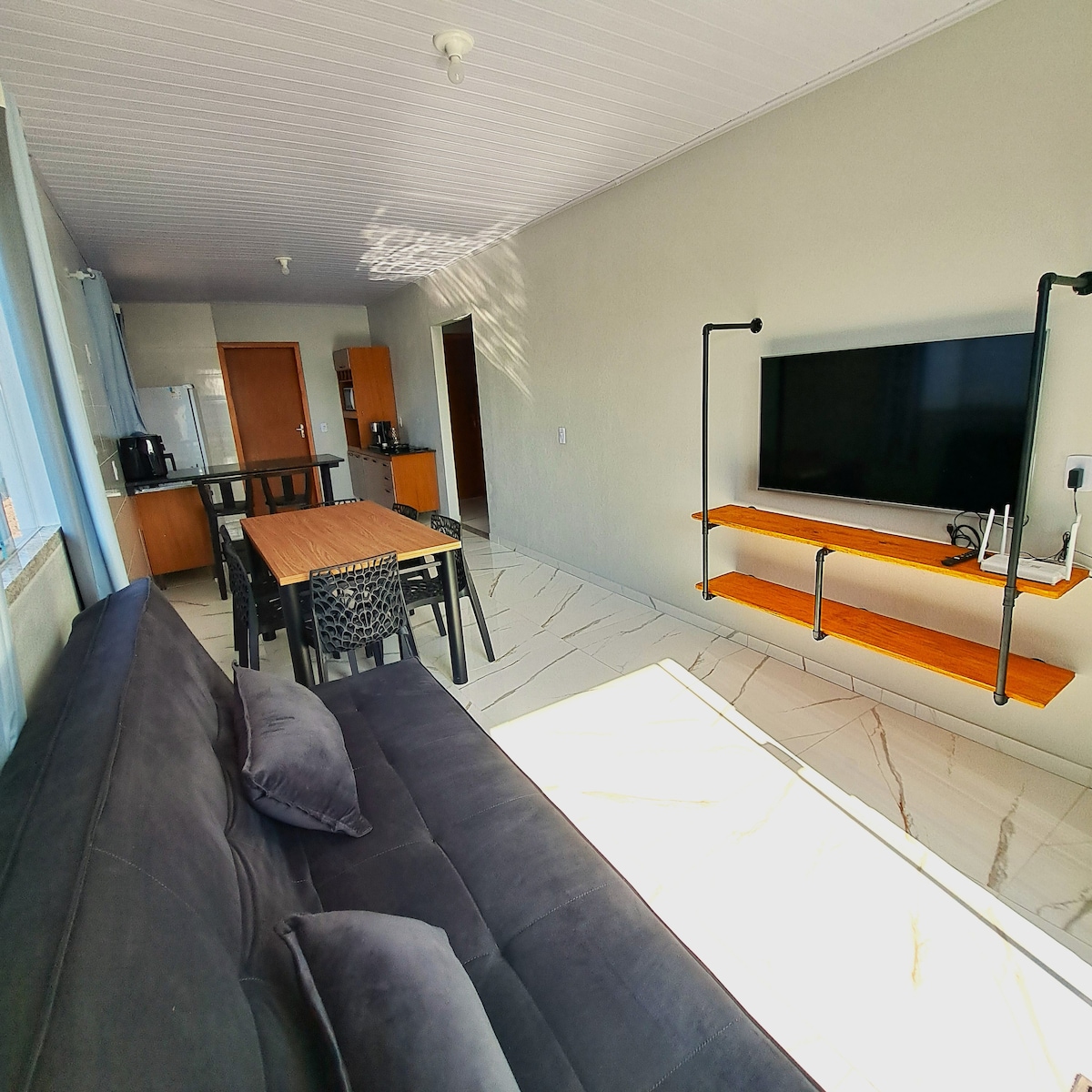 Imagine chegar em um loft cercado por um jardim vivo, com grama macia, flores coloridas e detalhes em madeira reaproveitada que dão alma ao espaço. Um cantinho de paz onde a brisa fresca do mar, a apenas 5 minutos a pé, atravessa o quintal e acalma o corpo depois de meses de rotina intensa. Aqui, cada detalhe convida você a respirar fundo, desacelerar e transformar sua estadia em um merecido descanso. E, quando quiser explorar, o Beto Carrero World está a apenas 10 minutos de carro.