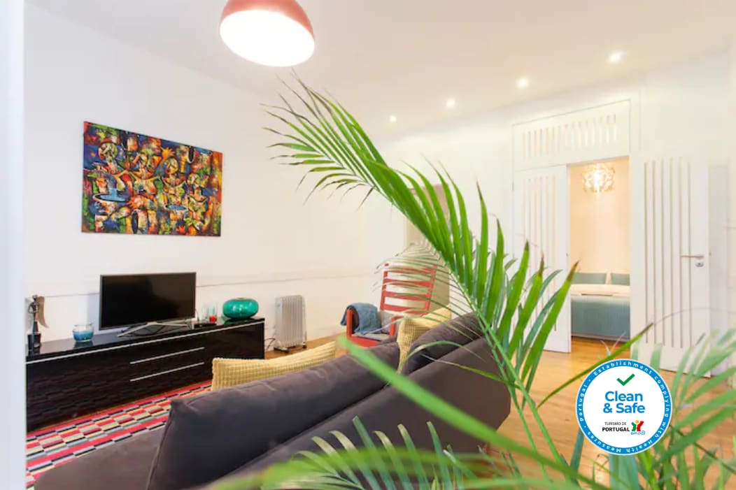 This trendy and stylish apartment is located in Baixa, Lisbon downtown, in a very central location and very close to Chiado. The decoration is upscale with beautiful paintings in the living room and comfortable setting throughout the entire flat with A/C. Recently refurbished, the building maintains the traditional character of Baixa, yet modern inside with two elevators. Just walk out from the building into the heart of Baixa where you can dine, shop and enjoy the best Lisbon has to offer!