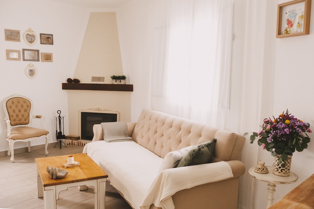 A place where waking up is accompanied by birdsong and the swaying of trees, airy and quiet, exuding tranquility. In the heart of the Alentejo, 90 minutes from the capital and three minutes from the center, surrounded by vineyards, this charming modern vintage-style village house offers magnificent views of the Alentejo plain, providing a peaceful and comfortable stay with access to cable channels and free Wi-Fi, bedroom and living room with air conditioning and wood-burning stove.