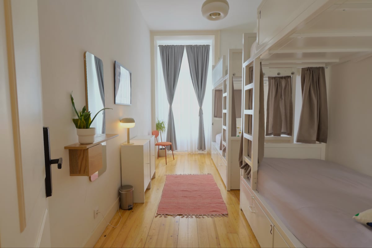 Explore the city, meet new friends, and stay with us at our artist-created boutique hostel in central Lisbon, Portugal. Book one bed in this shared room which has a maximum of 8 people. The bathroom facilities are on the same floor, and shared with other guests. We hope you will choose to be a part of our hostel community!