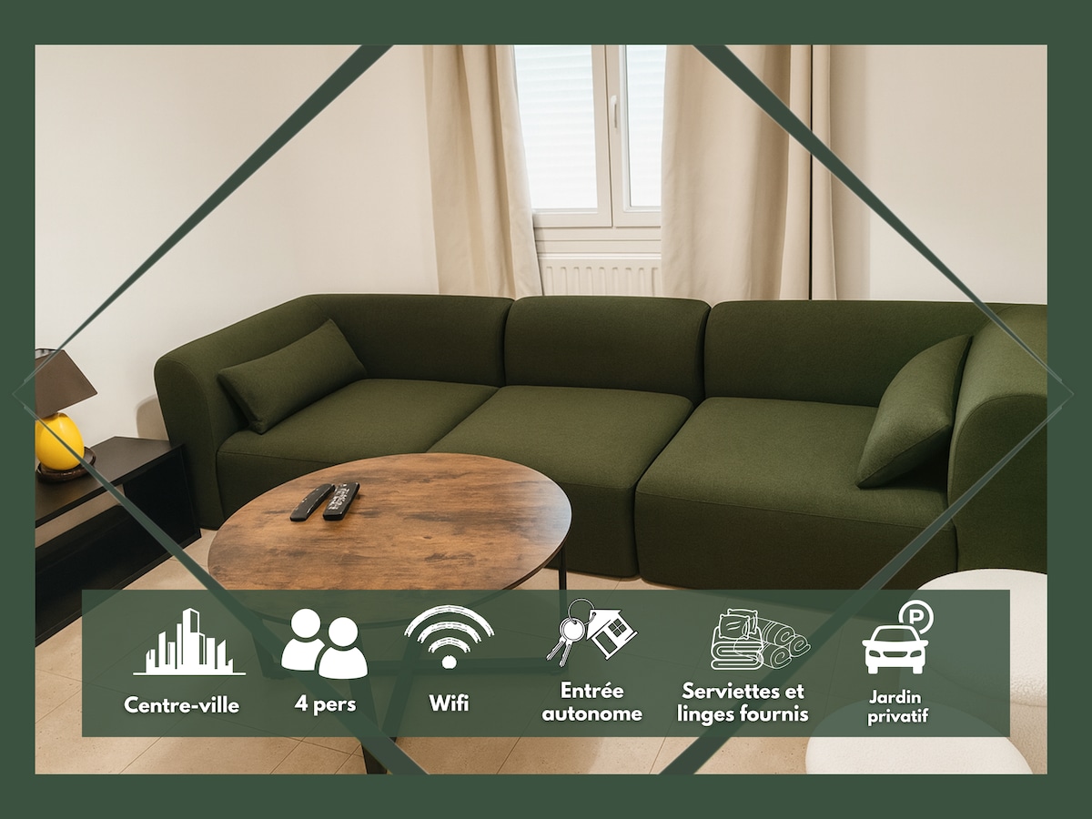 Appartement Au troisième étage sans ascenseur , d‘ une surface de 55 m2 , comprenant une pièce à vivre avec table, 4 chaises, canapé clic clac convertible en lit 140 , une table basse, un meuble TV et une TV . Une cuisine équipée, micro onde, four, gaziniere, cafetière, frigo. Un wc séparé Une salle d.eau séparée Une chambre avec lit 140, coin bureau et dressing Drap et linge de toilette fournis Torchon, produit ménagés fournis l'appartement est climatisé un garage personnel