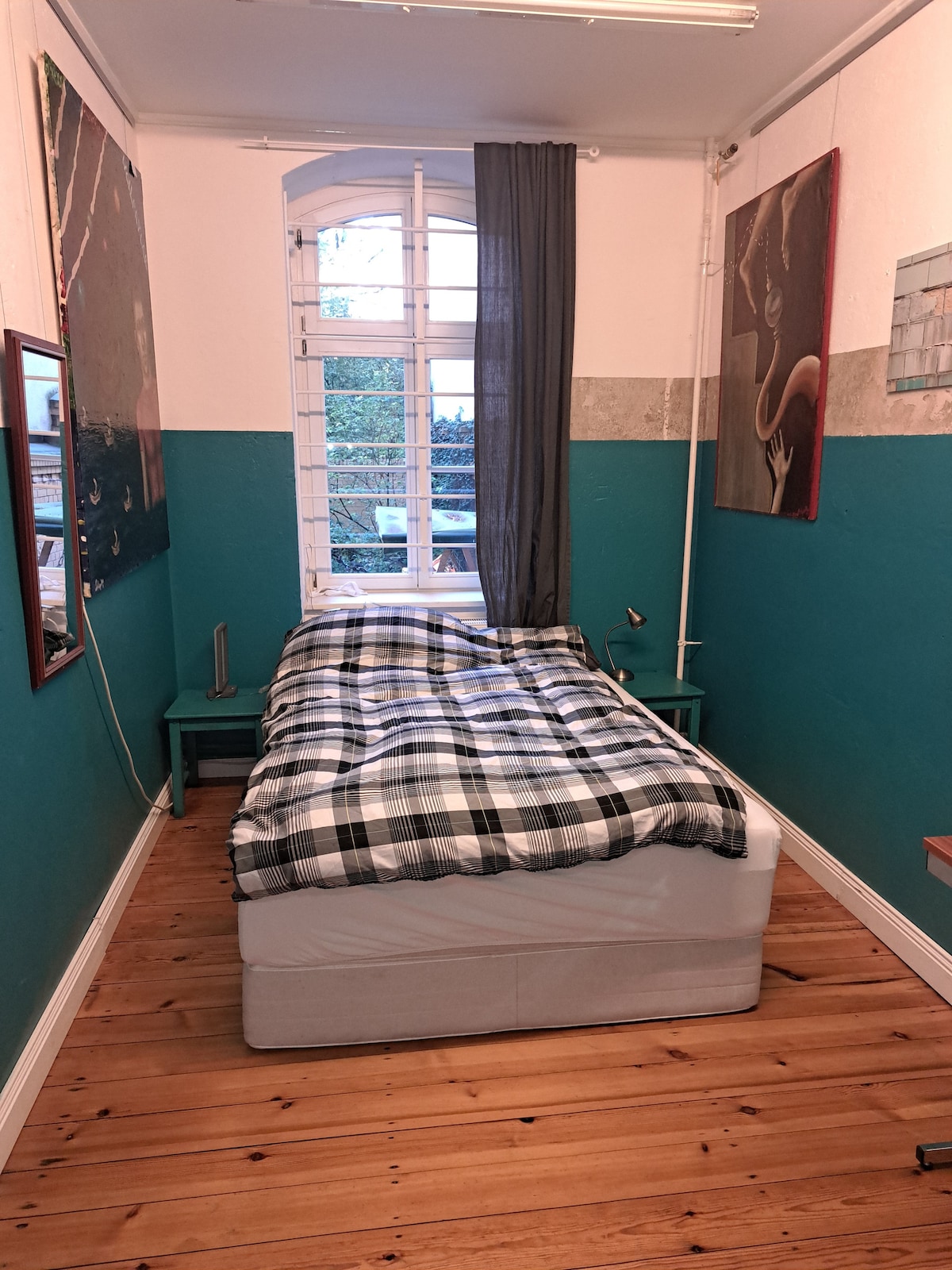 Large accomodation - an art gallery and language school - with basic standard, suitable for single travelers who appreciate a lot of space. It is also a nice place to work, centrally located in Prenzlauer Berg with shops, bars and restaurants in abundance nearby. Very well connected by public transport.