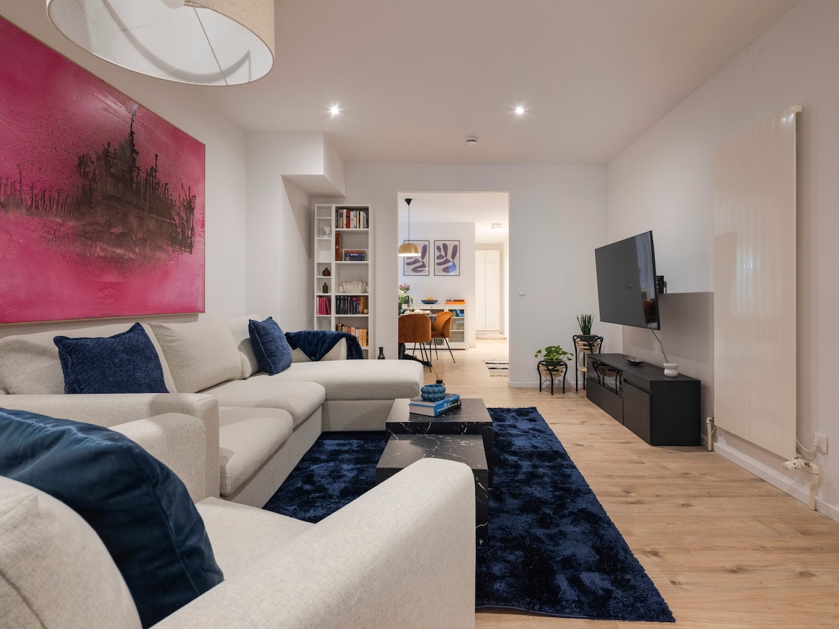 The Two Bedroom apartment has a total size of 59m² and includes 2 bathrooms (shower/bathtub with professional hair dryer and cosmetic), a living room with sofa bed and TV, a Double Bedroom with TV and a Single Bedroom. It also has large cabinet space, a fully equipped kitchen with dishwasher, washing machine and coffee machine, dining table. It can accommodate up to 3 adults and one child/infant (a child up to 9 years on a sofa bed and/or an infant in an extra cot).