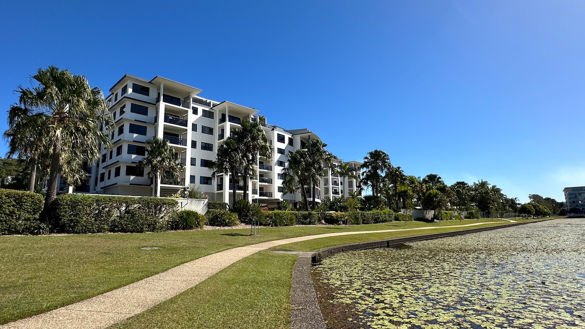 Largest lagoon pool,hot pools, spas on the coast ! cosy one bedroom unit Suited for couples 2 adults and up to 2 children. Two person deep bath and shower combo.! The sofa bed is suitable for children only. full kitchen,OCEAN VEIWS! .situated 100metres from beach and walking distance to moloolaba. restaurants right at your door step, pizza,sushi, and Alex surf club 1 minute walk.watersides,play area for children, gym,free use of BBQ's skate park accross the road,it's a beautiful oasis to relax.