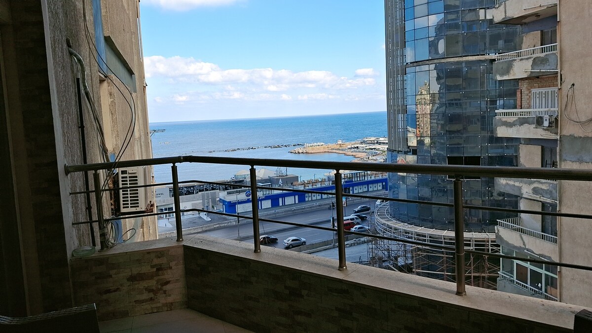Enjoy a luxurious stay in the heart of Alexandria at this modern seaview one bed apartment in Saba Pasha, one of the city’s most elegant neighborhoods ✔ Stunning sea view ✔ Fully new furnished with stylish modern décor ✔ Comfortable king bed + cozy seating area ✔ High-speed Wi-Fi & Smart TV ✔ Fully equipped kitchen ✔ Air conditioning for your comfort All brand new appliances &furniture Perfect for fam, business travelers, or solo guests who want comfort, style, and breathtaking views.