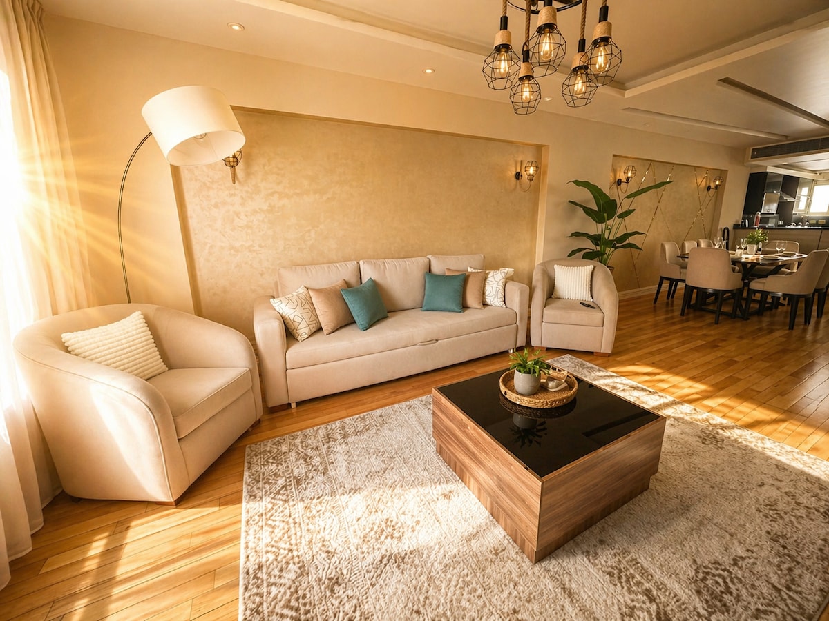 Wake up to the sight and cool breeze of the Mediterranean. This unique luxurious coastal apartment with it's boho chic laid-back style, is all about comfort. Enjoy the majestic open view of the sea &the Montaza royal gardens. Our unique spacious place has all the amenities you are looking for, restaurants and cafes are within a walking distance &affordable beach access. We are offering you our private place to enjoy during the time we are forced to leave it, hoping you like it as much as we do.