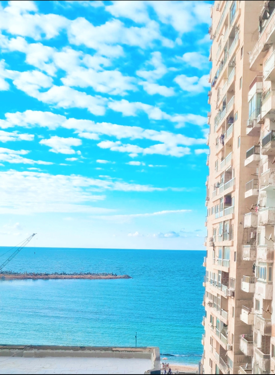 Your Luxurious Renovated 18th-Floor Mediterranean Getaway in Alexandria! 🌊🏖️ Imagine waking up to panoramic sea views from every corner of your apartment – even from your bed! Designed to maximize your sea experience, this spacious apartment is perfect for families. 3 Air condition bedrooms, each with two 120 cm beds. dining, Reception and living room offers breathtaking sea views to the west, North and East, perfect for enjoying the fresh, cool breeze, and ideal for soaking in the warm sun