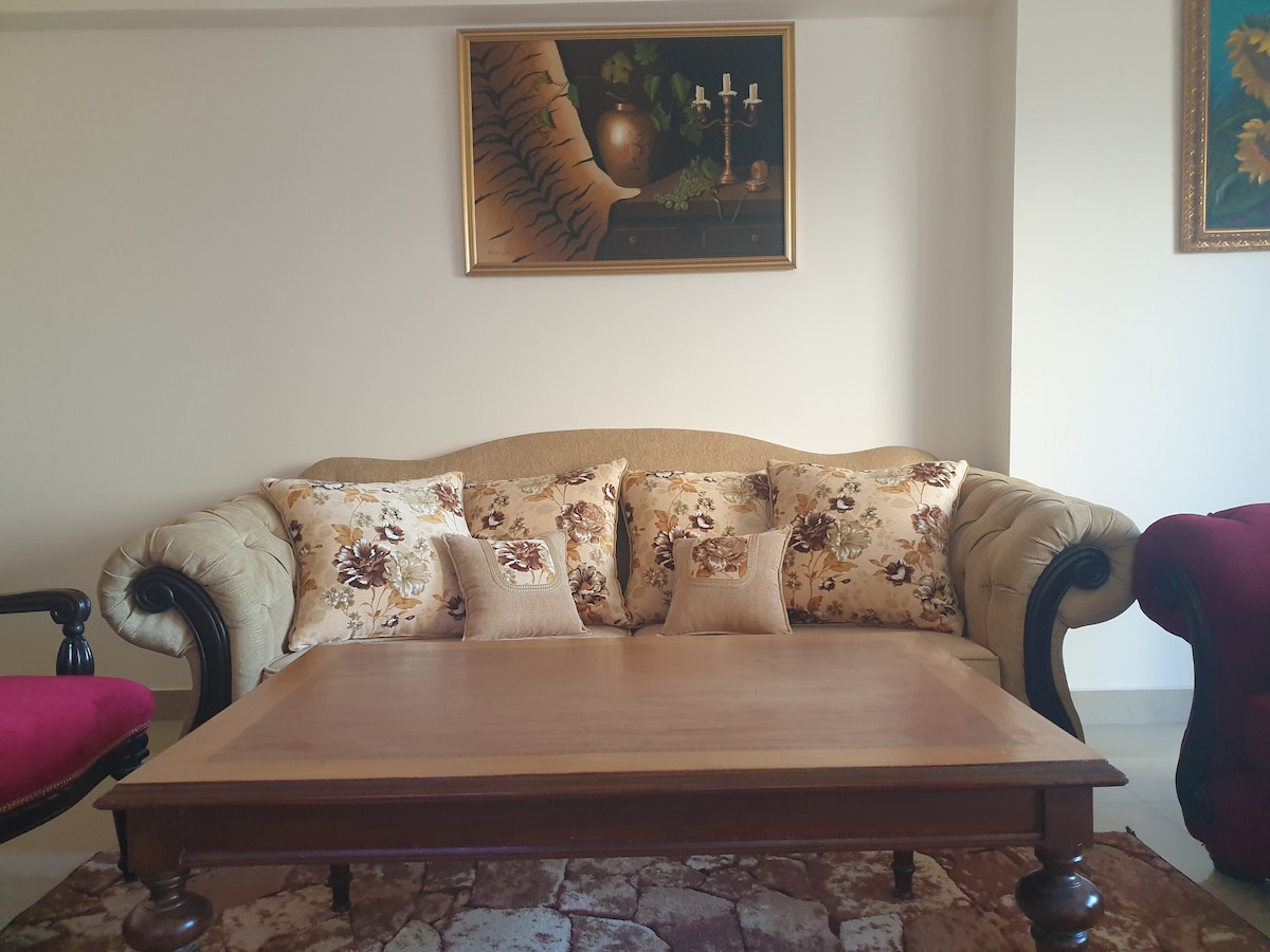 Prime location: 5 mins walk from main tram, 2 mins from Saptco & British Council surrounded by all your needs 1 Bedroom with 2 beds and a large closet and AC 1 Living room + recliner chair & L-shaped sofa bed with 55" TV & AC! Spacious 3 piece saloon & dining. No Ac **Located in the fourth floor with stairs only as it's an early 90s building so don't judge a book by it's cover** State of art kitchen Our floor now has security cameras outside for safety.