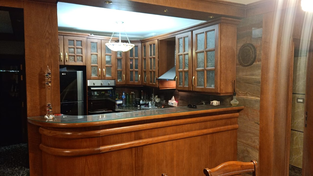 Prime location: 5 mins walk from main tram, 2 mins from Saptco & British Council surrounded by all your needs 1 Bedroom with 2 beds and a large closet and AC 1 Living room + recliner chair & L-shaped sofa bed with 55" TV & AC! Spacious 3 piece saloon & dining. No Ac **Located in the fourth floor with stairs only as it's an early 90s building so don't judge a book by it's cover** State of art kitchen Our floor now has security cameras outside for safety.