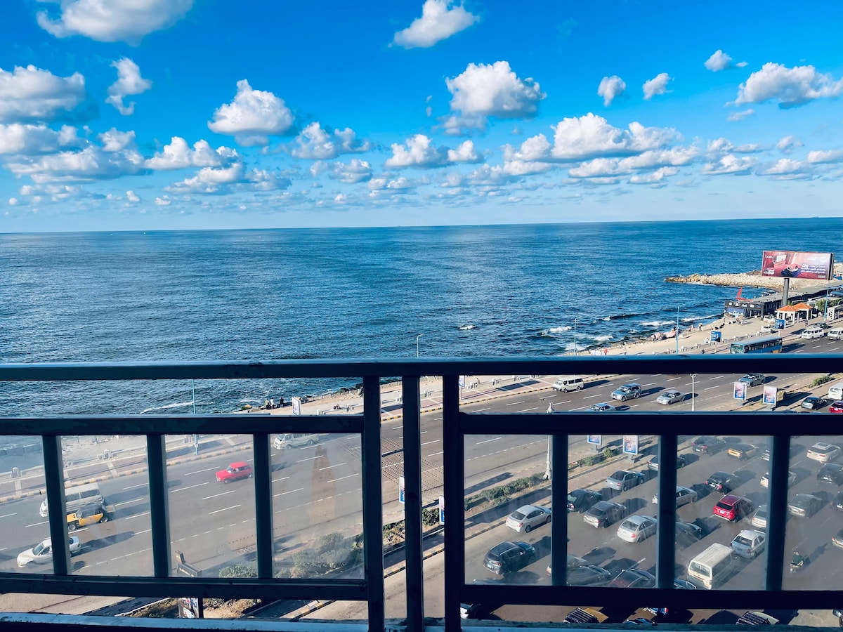 In the heart of Alexandria and in front of one of the most charming shores in the world, high in the sky on 5th floor is the apartment. From that height you can see the King's palace, the beaches and those tiny cars flowing on the road. Inside a modern and cozy flat with all necessary and unnecessary facilities, tidy and clean waiting for your arrival. Hope you experience a remarkable and unforgettable vacation ❤
