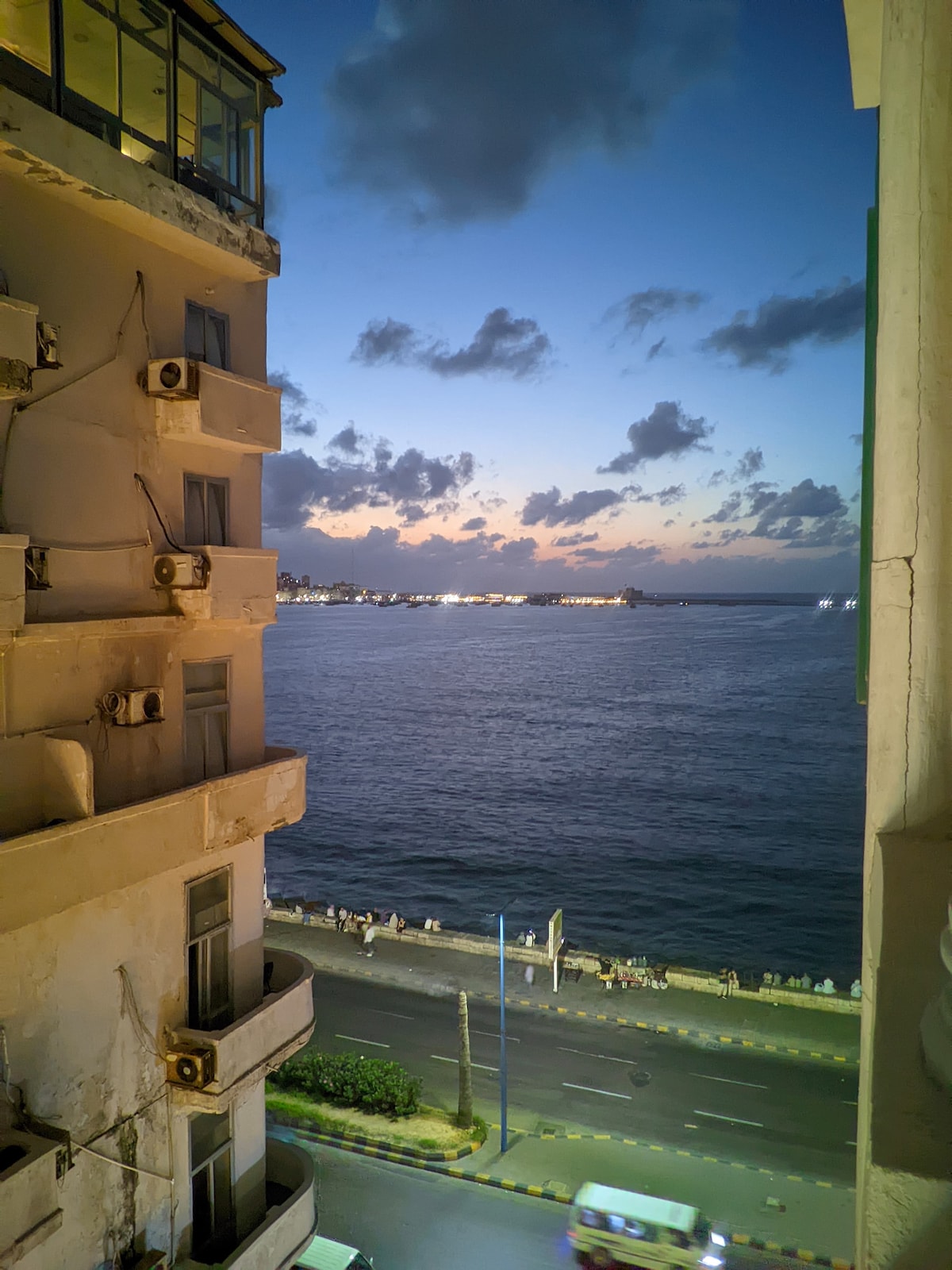 Wake up to the sound of the sea in this bright, private room located in the heart of Alexandria Enjoy your morning coffee on the private balcony with beautiful sea views, or unwind in the evening while watching the sunset over the Mediterranean. You’ll be just steps away from El Raml Station, with easy access to public transportation, historic landmarks, cafés, restaurants. The Corniche is within walking distance, making it easy to enjoy seaside walks and Alexandria’s vibrant city life