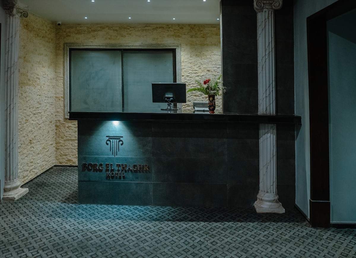 Indulge in the lap serenity at Borg El Thaghr Hotel rooms where luxury and comfort merge to create an unforgettable getaway. Escape the everyday hustle and Immerse yourself in an ambiance of redefined elegance. Imagine waking up to a breath taking view of the ancient roman theatre. At borg el thaghr hotel, our rooms offer more than just comfort, they provide a gilmpse into history itself.