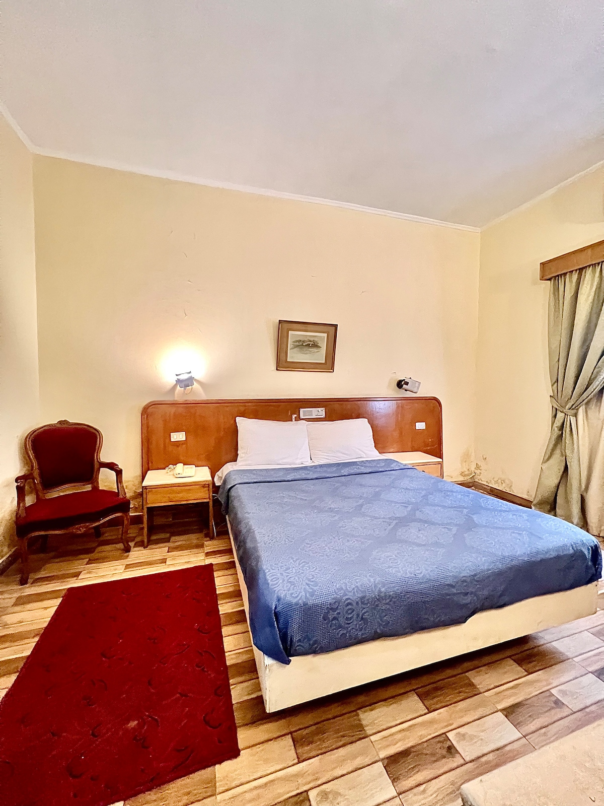Cozy hotel room with King Size Bed and ensuite bathroom, located directly on the tram line in downtown Alexandria. Steps away from Alexandria University, the Library of Alexandria, and the Greek Roman Museum. Enjoy complimentary open buffet breakfast, free on-site parking, and professional cleaning during your stay. Bar and bakery available for an extra fee. Ideal for travelers seeking convenience, comfort, and proximity to Alexandria's key attractions. 24-hour reception and dedicated host.