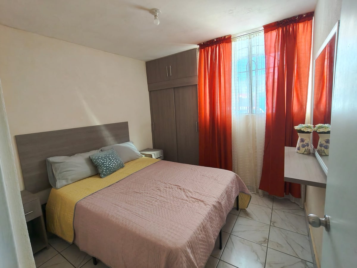 Acogedor departamento en planta baja ubicado estratégicamente para disfrutar del Querétaro antiguo (Centro), acogedor y totalmente enfocados en la limpieza para que disfrutes de una estancia segura y placentera. Ubicado en uno de los primeros barrios en el borde del Centro Histórico que surgieron con el crecimiento moderno de la ciudad. El departamento es ideal tanto para turistas y para empresarios que llegan a Querétaro en plan de negocios con excelente acceso de vialidades principales.