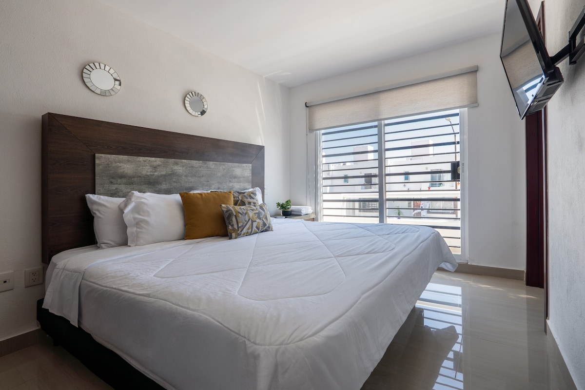 Relax and Unwind in this Cozy Private Loft in Querétaro! This space was designed for you to enjoy comfort, rest, and complete privacy. With a modern design and plenty of natural light, it’s perfect for a peaceful and stylish stay. Located on the upper floor of a secure gated community with surveillance and security guards, just 15 minutes from the historic center by car. You’ll have the entire space to yourself!