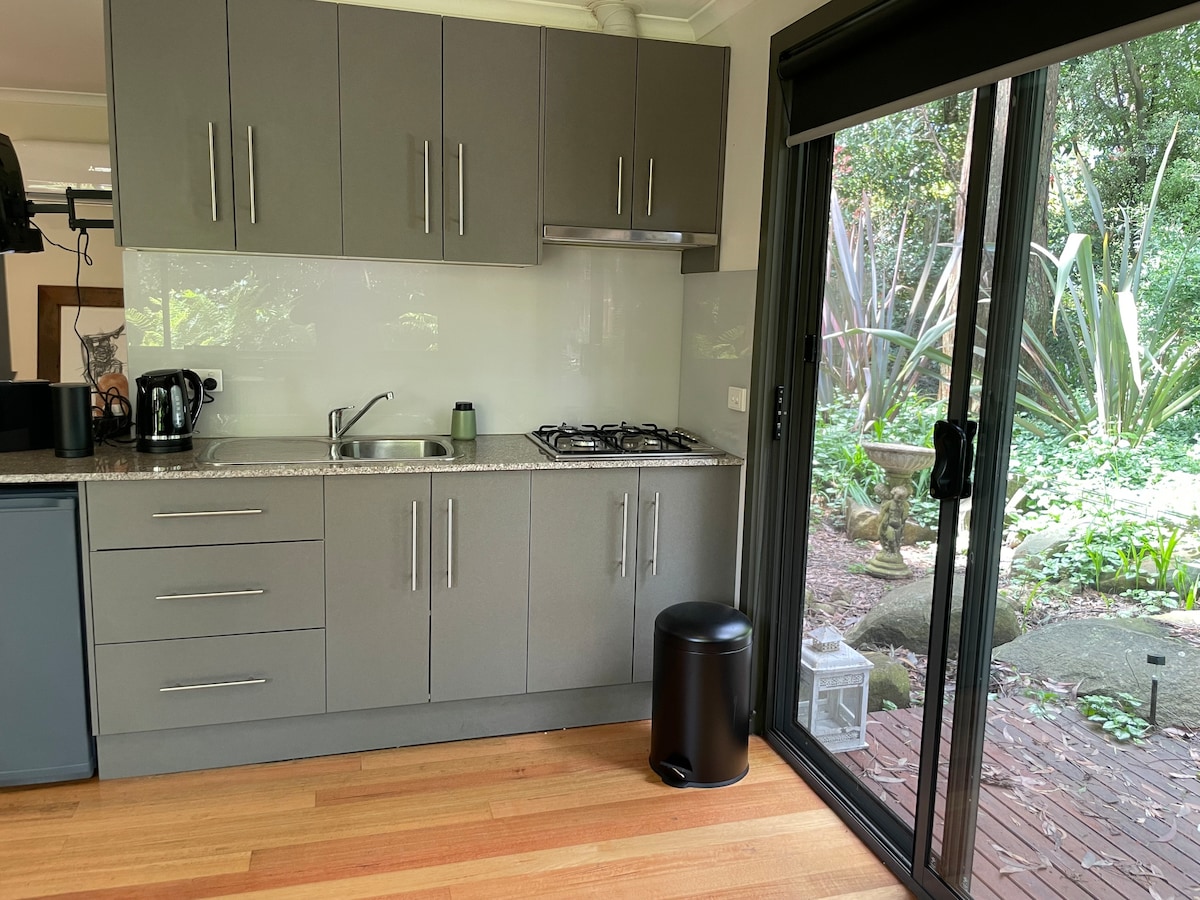 The Sett Finalist for Airbnb’s Best New Host 2025 award, The Sett is a private couples’ retreat in the Dandenong Ranges. Enjoy your own private entrance, a cosy gas fire, a luxury bathroom, and a welcoming space with large windows that frame the forest surrounds. Thoughtful touches make every stay special., including a delicious continental breakfast. To keep the retreat calm & carefree, The Sett does not include full cooking facilities. A kettle, coffee machine, and toaster are provided.