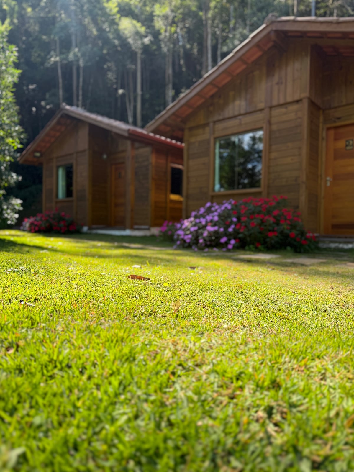 O chalé possui 35m² edificado em terreno de 71 mil m² sendo maior parte de mata atlântica. Possui um quarto banheiro cozinha sala e varanda. Uma cama queen sofá retrátil e colchão de casal de espuma acomodando 4 pessoas. Possui jardim arborizado e lago com peixes, é permitido pescar. O ambiente proporciona uma ótima oportunidade para conexão com a natureza. Localizado próximo as badaladas cervejarias das montanhas capixabas. Checkin de 17 às 21h Checkout 14h Possuímos internet via fibra óptica