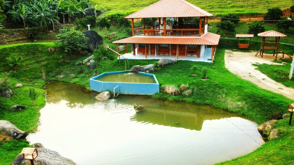 平均评分 5 分(满分 5 分),共 3 条评价带湖泊和高空滑索的农场|距离Pedra Azul 20分钟