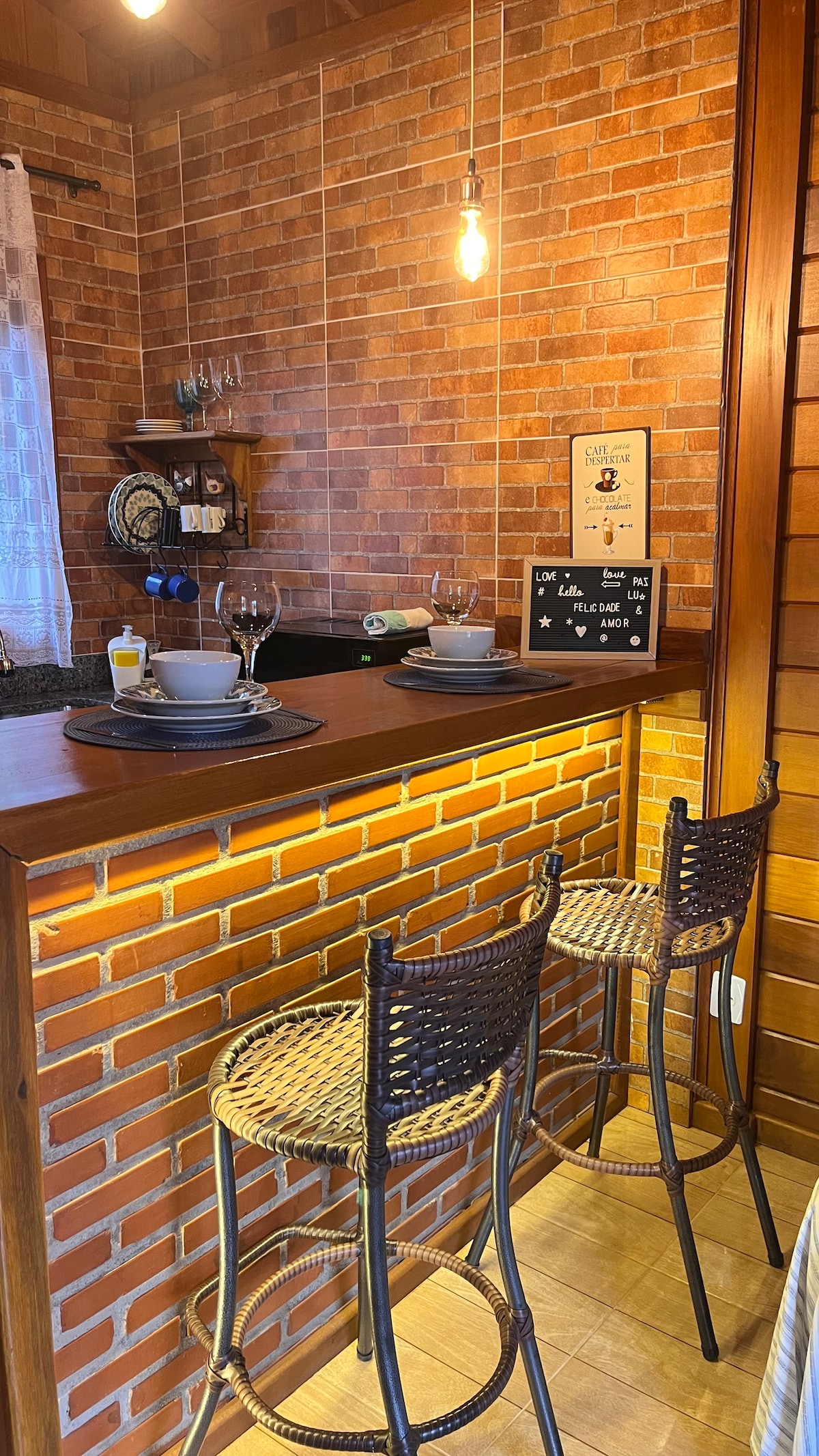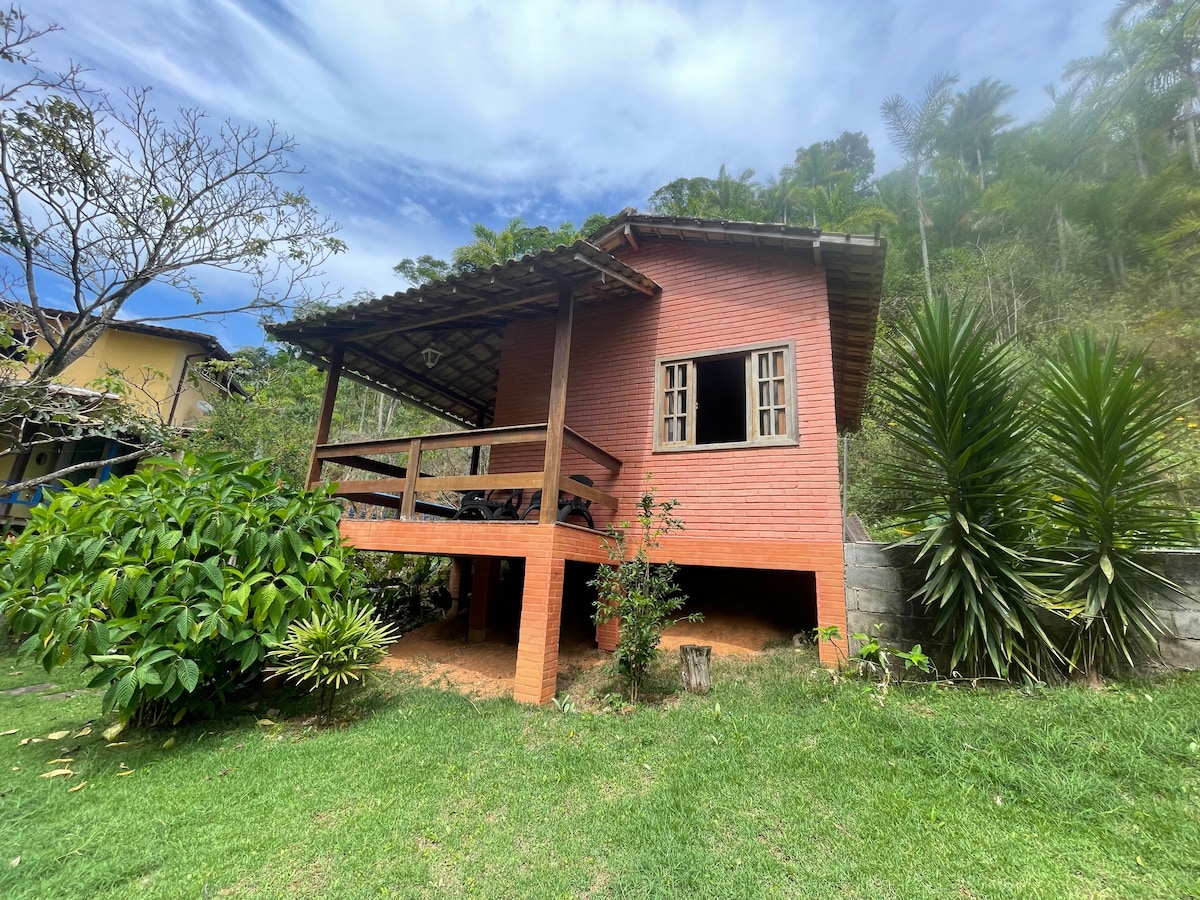 O chalé possui 35m² edificado em terreno de 71 mil m² sendo maior parte de mata atlântica. Possui um quarto banheiro cozinha sala e varanda. Uma cama queen sofá retrátil e colchão de casal de espuma acomodando 4 pessoas. Possui jardim arborizado e lago com peixes, é permitido pescar. O ambiente proporciona uma ótima oportunidade para conexão com a natureza. Localizado próximo as badaladas cervejarias das montanhas capixabas. Checkin de 17 às 21h Checkout 14h Possuímos internet via fibra óptica