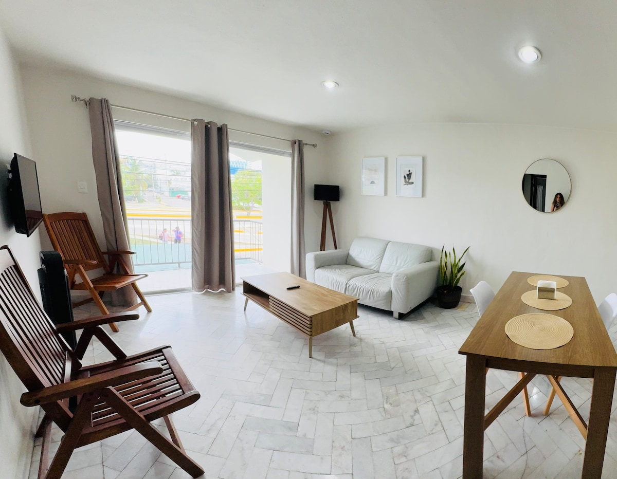 Cozy one-bedroom apartment located in the south of Cancún. 15 minutes from the hotel zone and 18 minutes from the airport. The apartment features: -One King-size bed -One double sofa bed -1 bathroom -Equipped kitchenette (stove, microwave, refrigerator, and coffee maker) -Air conditioning units. Important Information: The listing corresponds to an apartment located on the upper floor. The building does not have an elevator. The lobby located on the ground floor and the pool are shared areas.