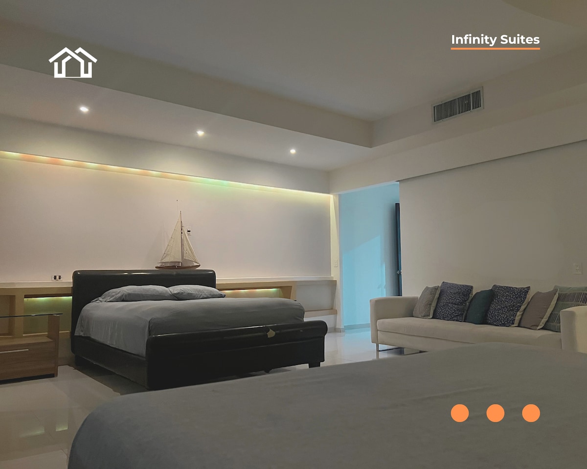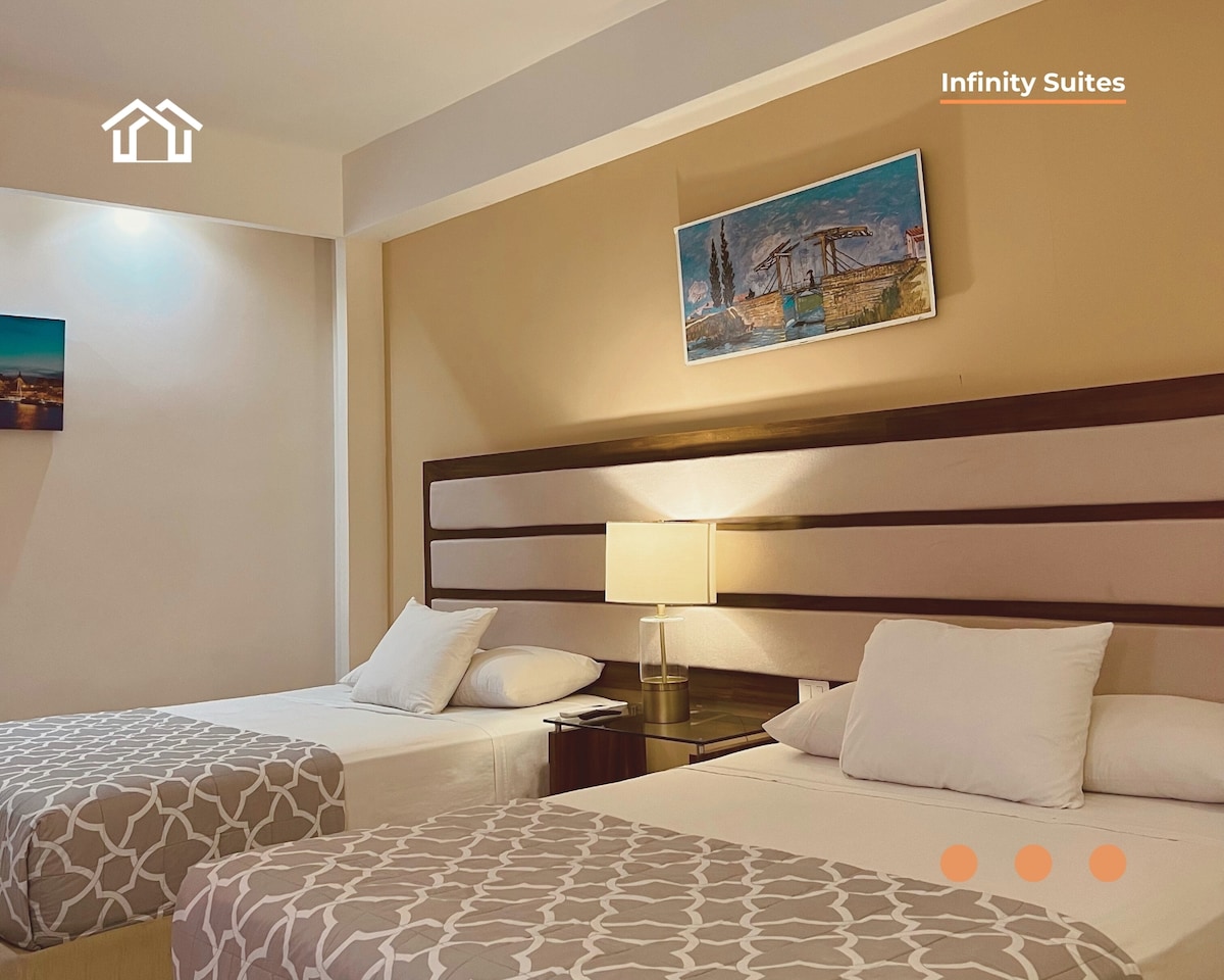 ¡Encantador Suite Familiar en Aparthotel con piscina! Perfecta para familias o grupos que viajen juntos pero busquen habitaciones separadas. Contarán con 2 habitaciones privadas y 1 baño completo privado. -Cada habitación cuenta con: -A/C -SMART TV con cable -Closet y frigobar Además podrán disfrutar la piscina de este bello aparthotel, así como su cocina. --Ubicado en privada residencial con seguridad -gran ubicación cercano a supermercado, parada de bus y restaurantes.