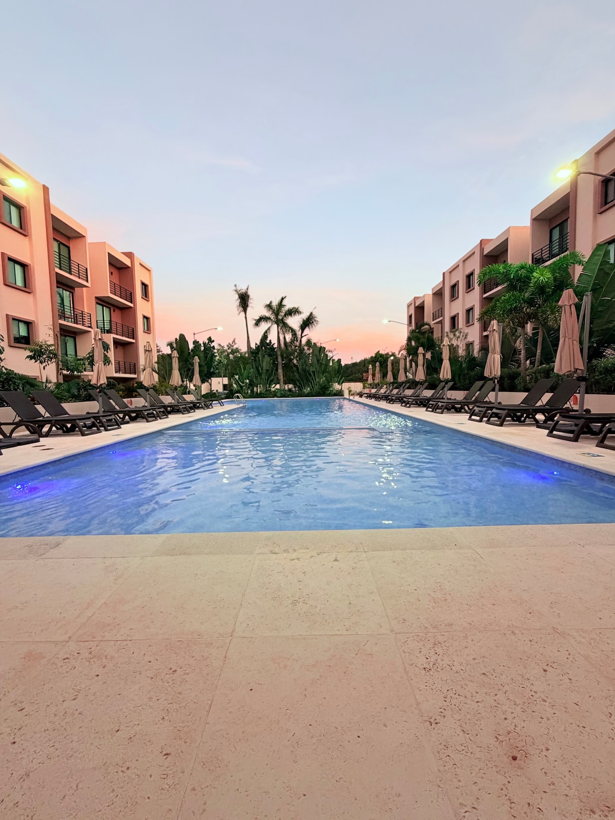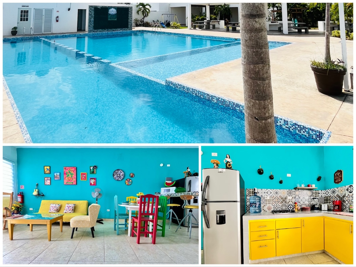 Precioso departamento equipado, muy cómodo y con alberca. Extraordinaria ubicación en la zona turística del centro de Cancún, en una calle tranquila y segura, a pocos pasos del Mercado 28 y de una avenida importante con acceso a camiones de zona hotelera para ir a la playa, por lo que es genial para movilizarse caminando o en transporte público... No necesitas rentar auto! Está cerca de todo! Restaurantes, bancos, lavandería, gimnasio, gasolinera, Oxxo, Walmart y el famoso Mercado 28!