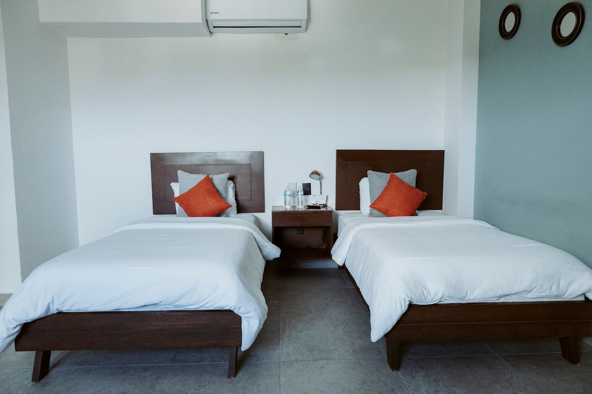 Cómodo depa de 2 recámaras y 2 baños en Cancún. A 10 min. del aeropuerto y 15 min. de playas y Zona Hotelera. Ideal para relajarte y moverte fácil por la ciudad o hacia la Riviera Maya (¡solo 30 min!). Zona tranquila y segura, con restaurantes, taquerías, bares, supermercados ; hasta paintball y pickleball cerca. Internet de alta velocidad, estacionamiento gratuito y alberca, tiene todo lo necesario para que disfrutes como en casa. Cocina equipada, A/C y excelente iluminación natural;